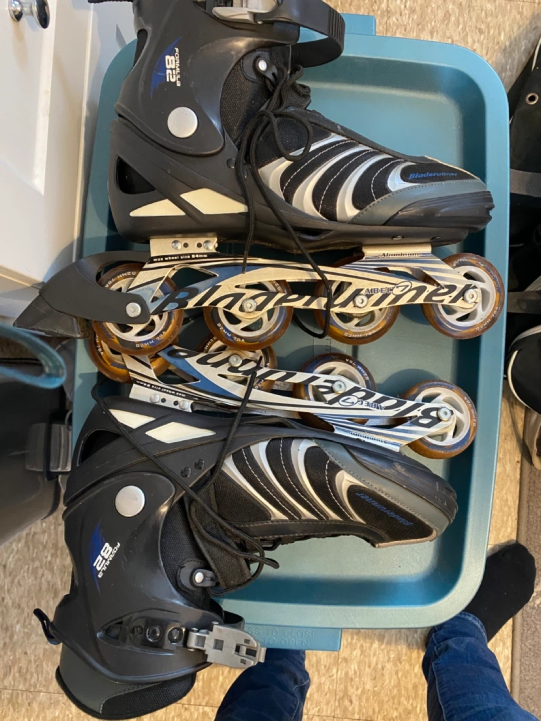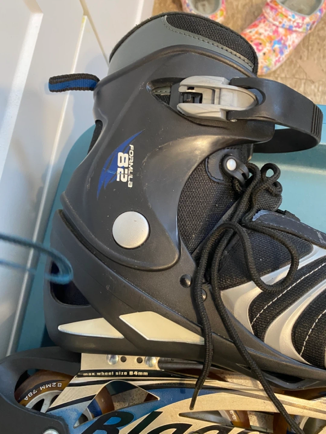 Selling a pair of Bladerunner Formula 82 inline skates. They're black and silver with a wheel size of 82mm. The max wheel size is 84mm. They're in good condition and ready to roll!