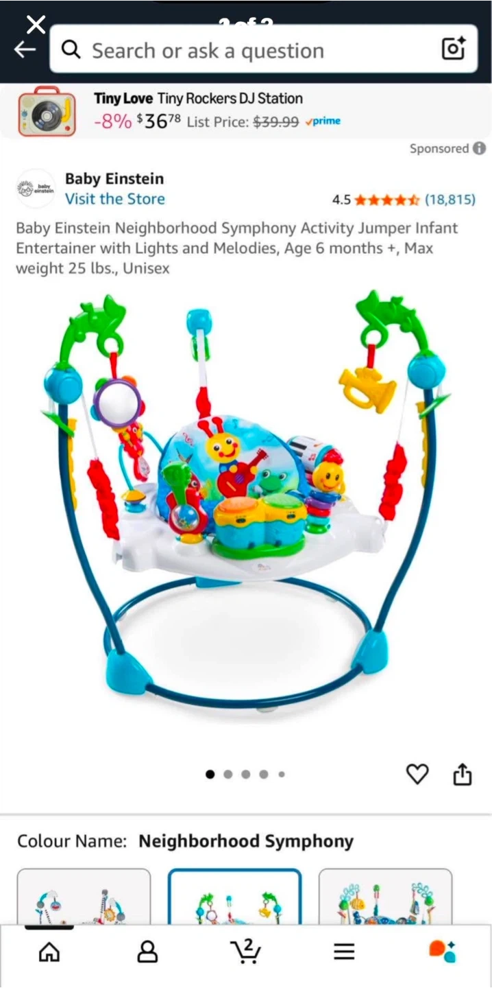 Selling a Baby Einstein Neighborhood Symphony Activity Jumper! It's great for babies 6 months and up, with a max weight of 25 lbs. The jumper entertains with lights and melodies. Colour Name: Neighborhood Symphony