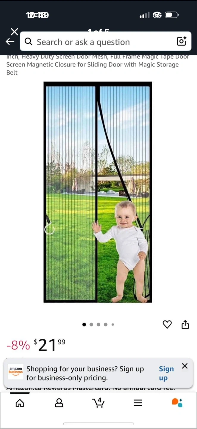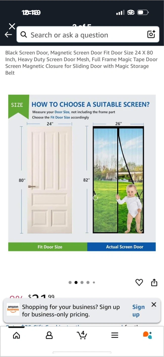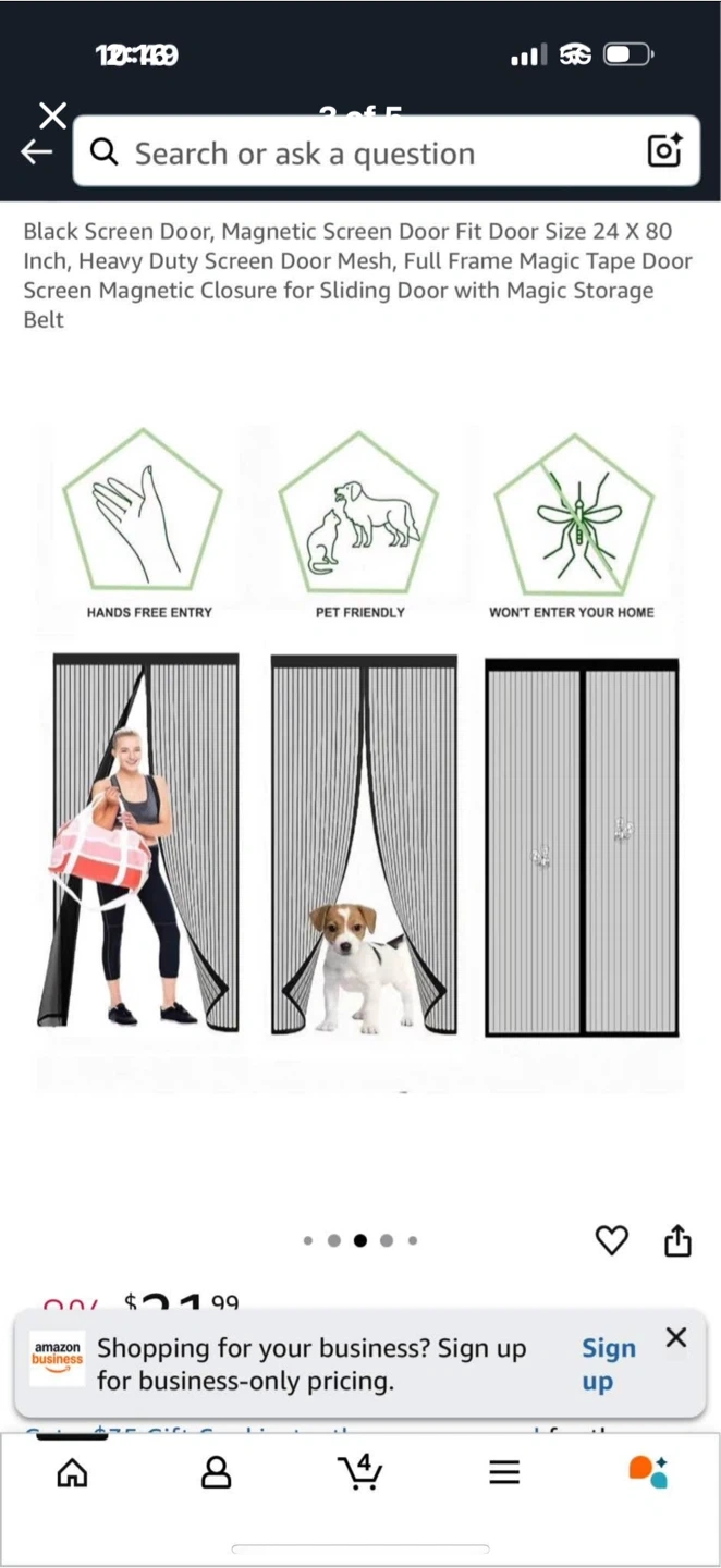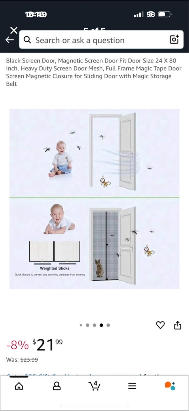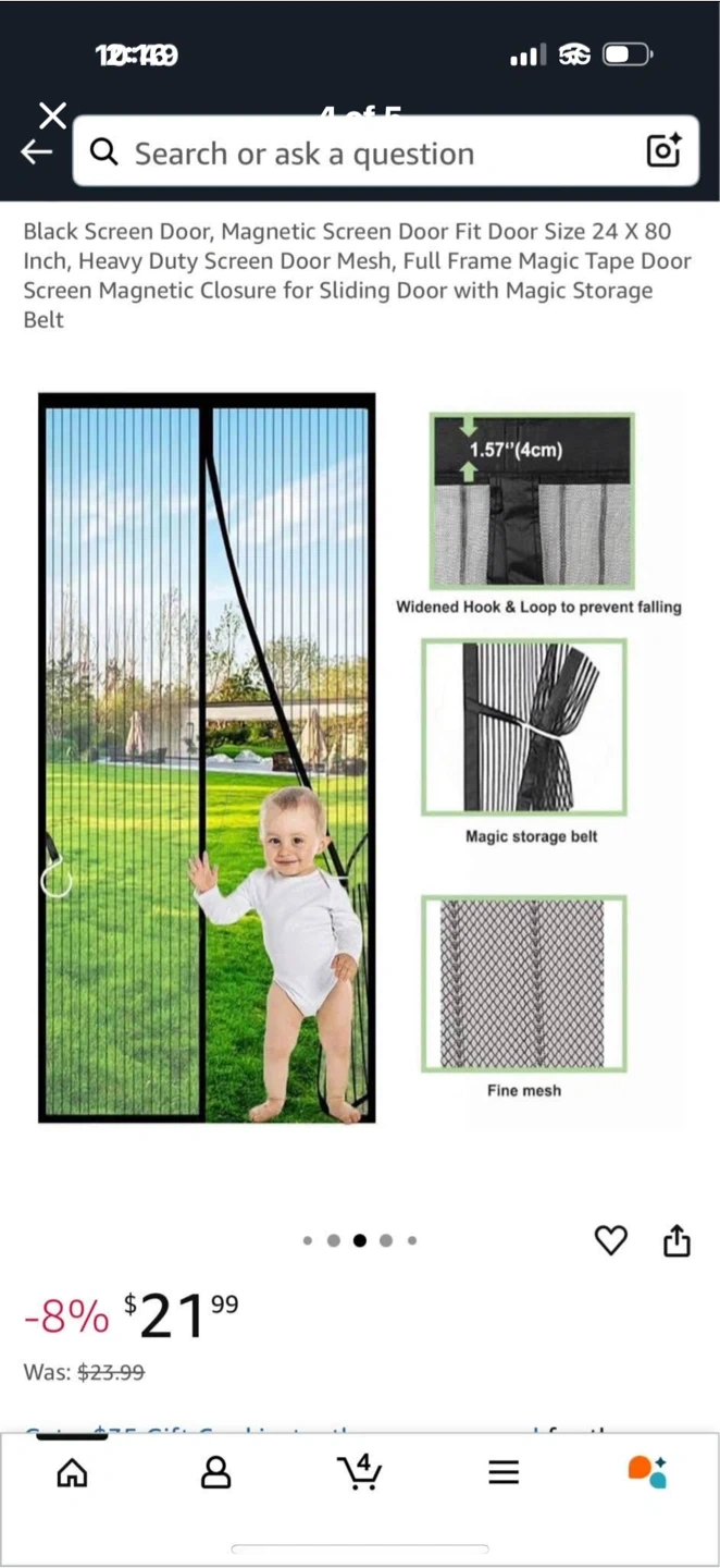 Selling a magnetic screen door perfect for keeping those pesky bugs out! It's a black screen door, size 24 x 80 inches. It features a magnetic closure and a magic storage belt. It also has weighted sticks for a quick closure to prevent any annoying creatures from entering your home
