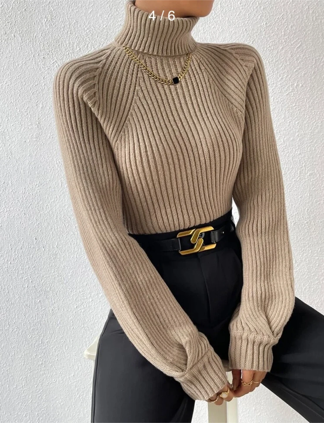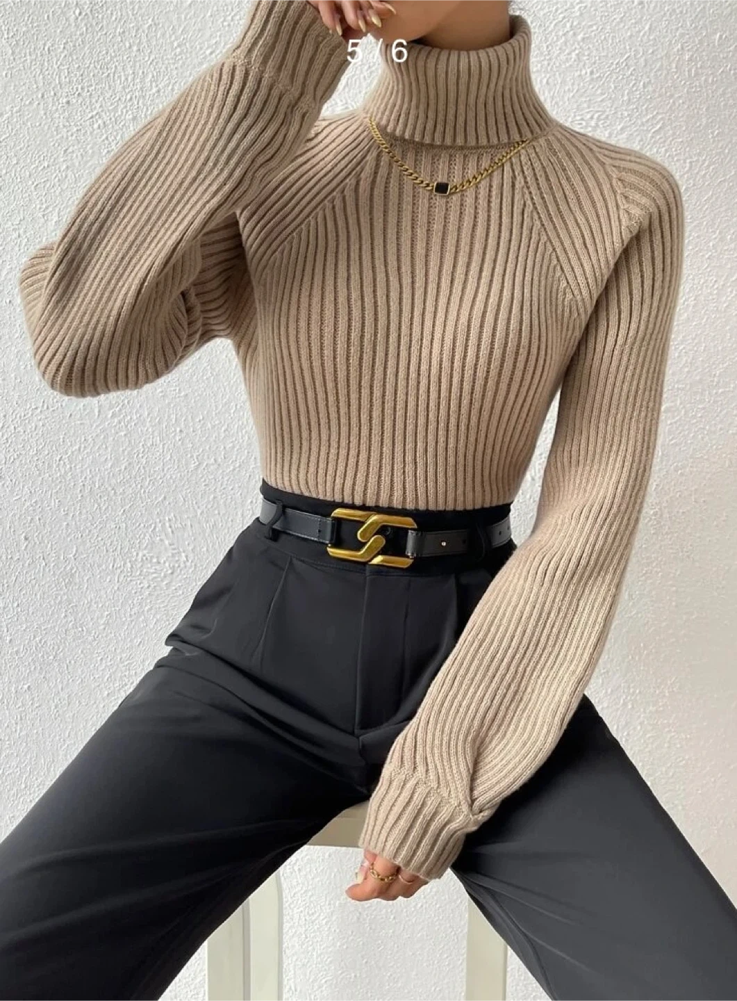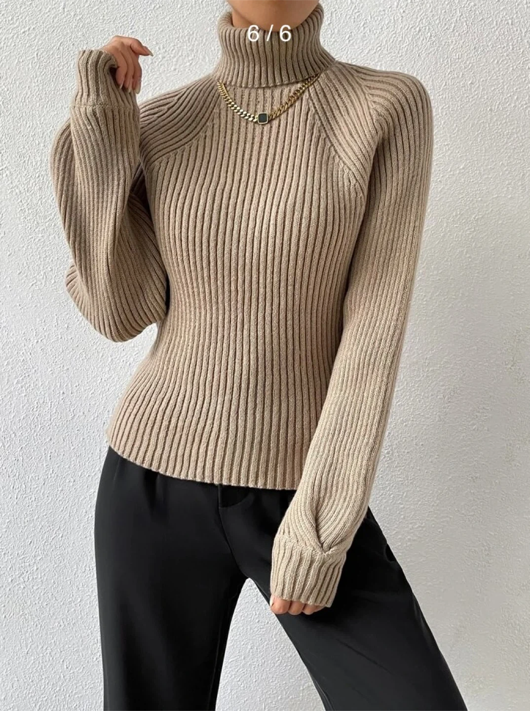 Turtleneck Raglan Sleeve Ribbed Knit Sweater