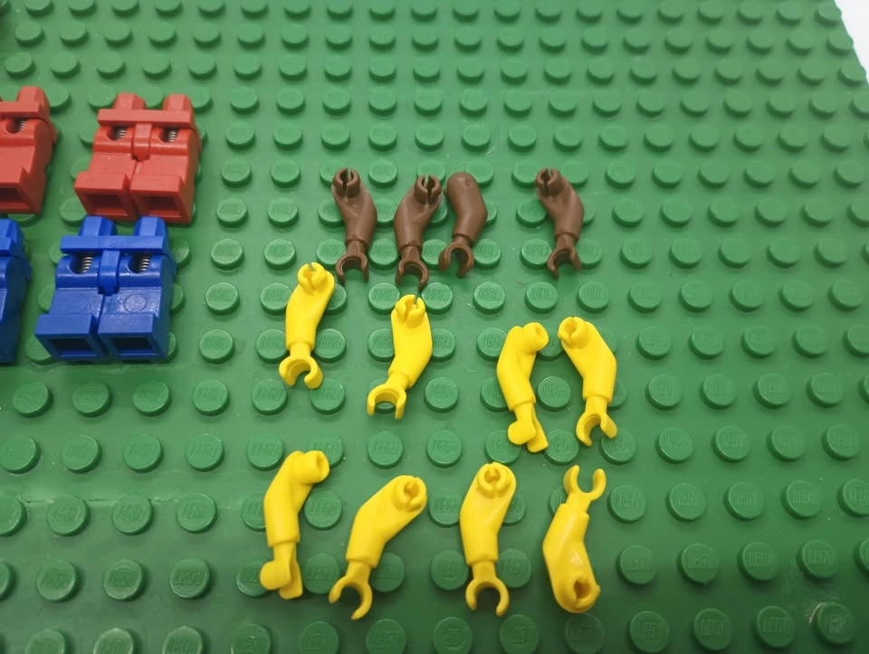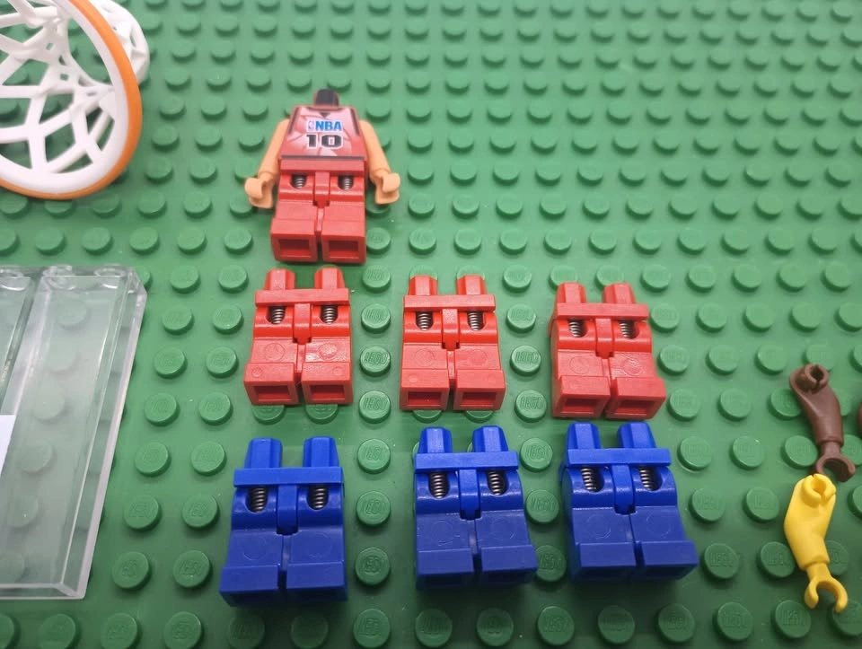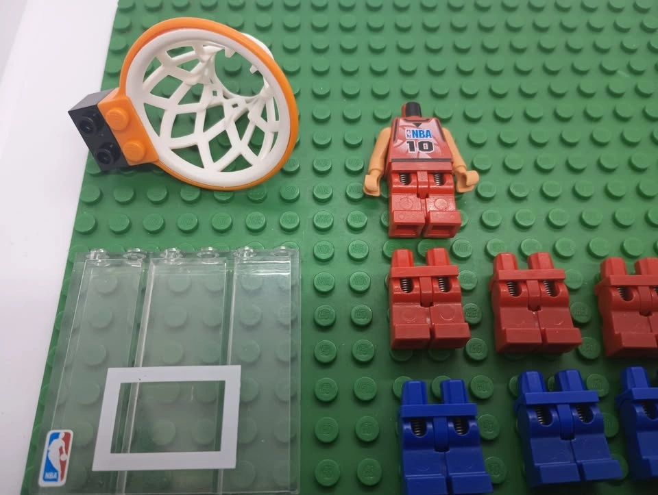 Lot of Lego NBA minifig parts and pieces including LEGO NBA basketball minifig arms (which are longer than normal minifig arms and have permanently attached hands) and Lego NBA minifig legs with springs in various colors including violet, dark blue and red and other parts from Lego NBA sets including backboard, rare orange Spalding NBA basketball (this one piece goes for about $20 US online) and net. From a SF/BF home in Charleswood
