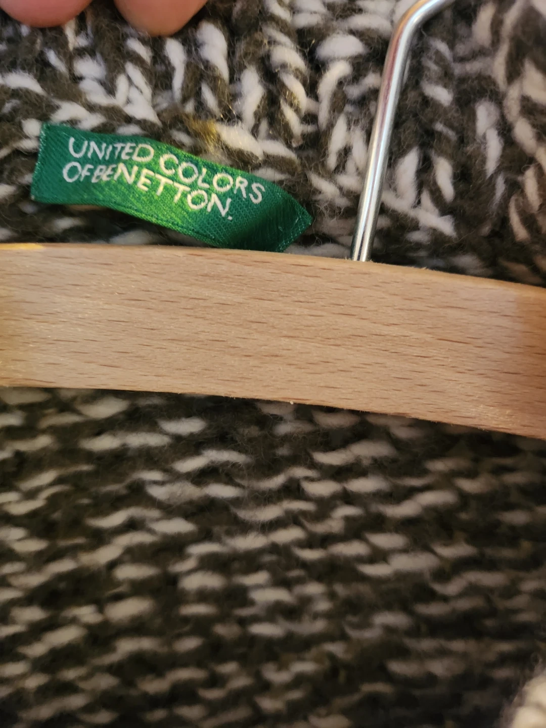 Here's a cozy knit cardigan from United Colors of Benetton! It features a unique pattern and is perfect for layering during cooler weather