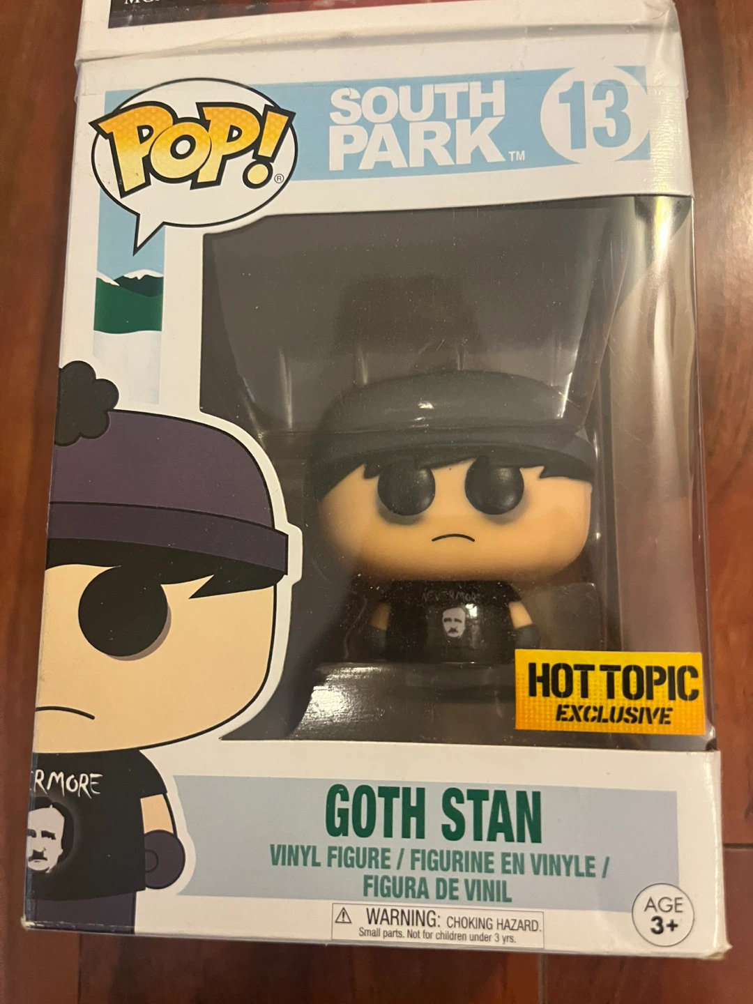 Selling a Funko Pop! figure of Goth Stan from South Park. It's number 13 in the series and is a Hot Topic exclusive. The figure is a vinyl figure and is in great condition. Perfect for any South Park fan!