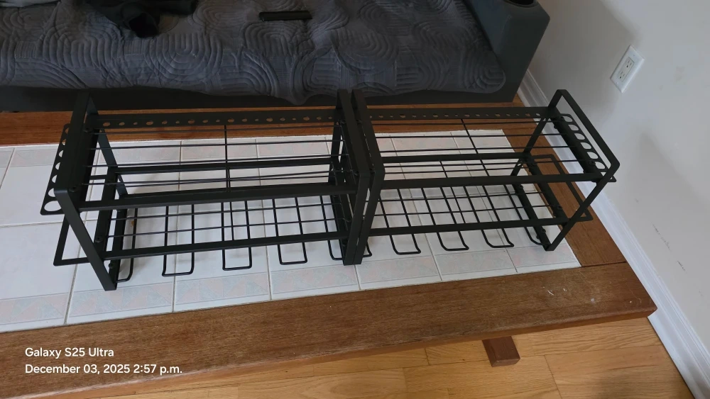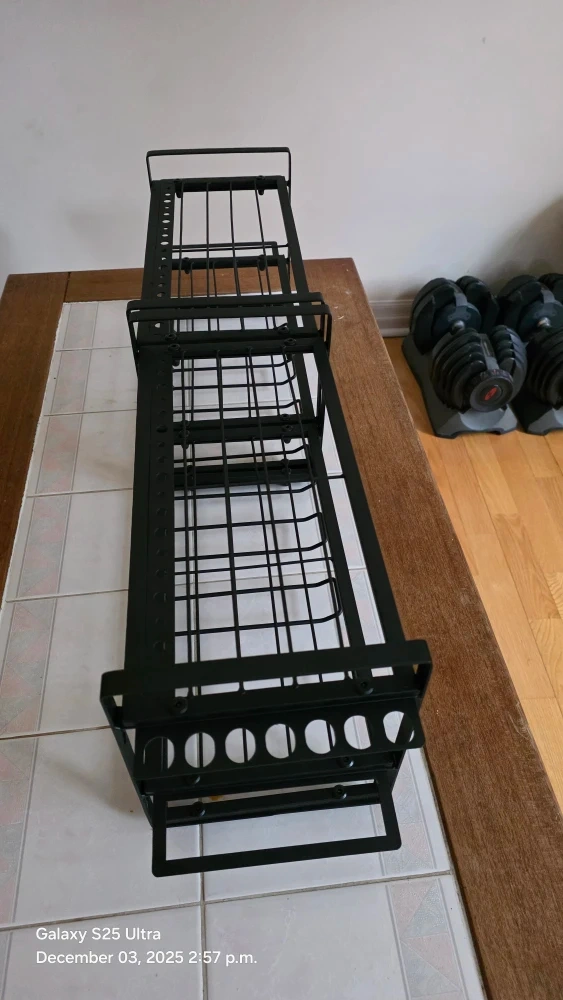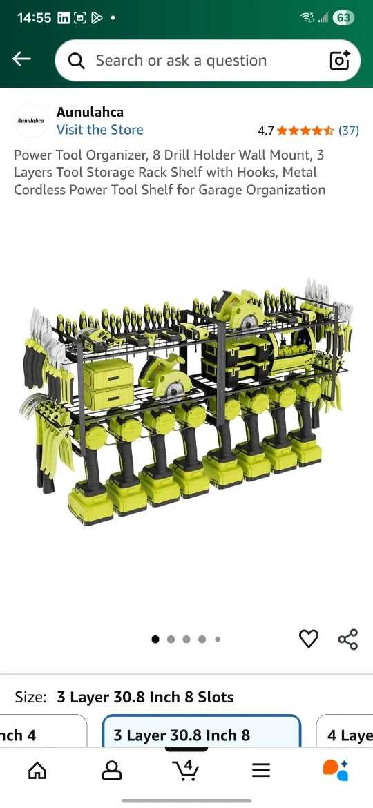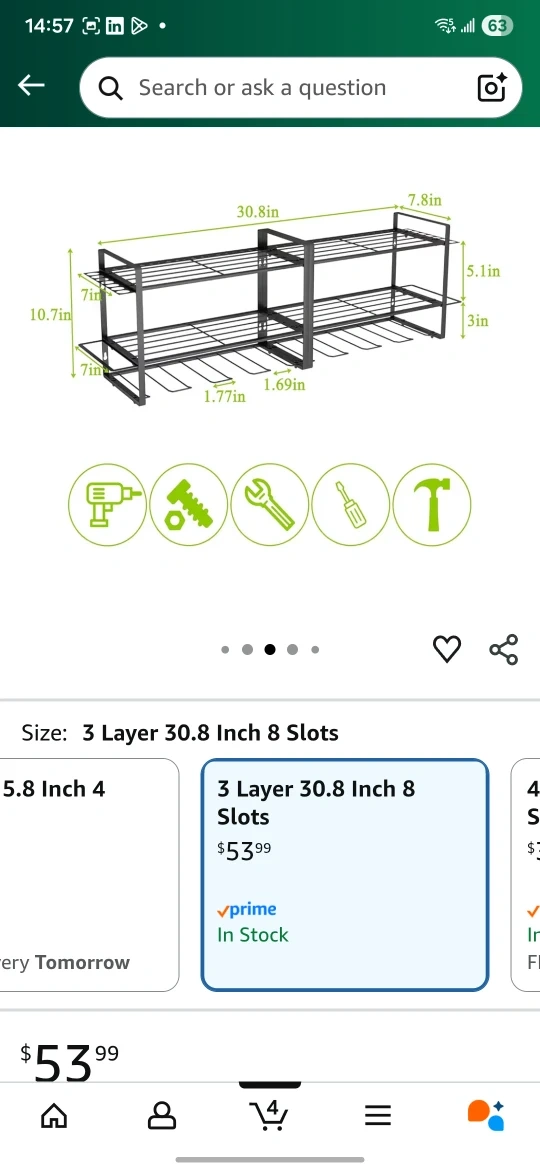 Selling a 3-layer power tool organizer by Aunulahca. It measures 30.8 inches and has 8 slots. Keep your garage organized with this handy shelf that includes hooks for your tools!