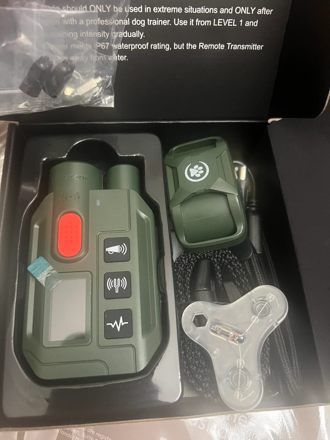 I'm selling a brand new 2 in 1 Ultrasonic Dog Training Collar! It's suitable for all breeds and comes in its original box. Perfect for training your furry friend!