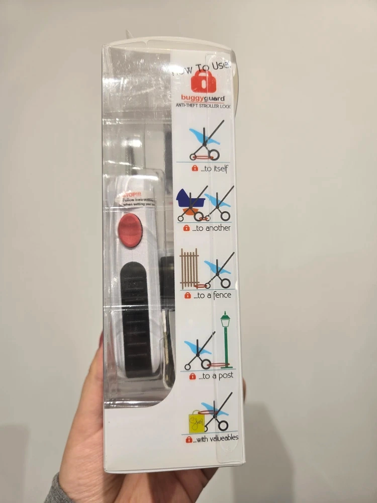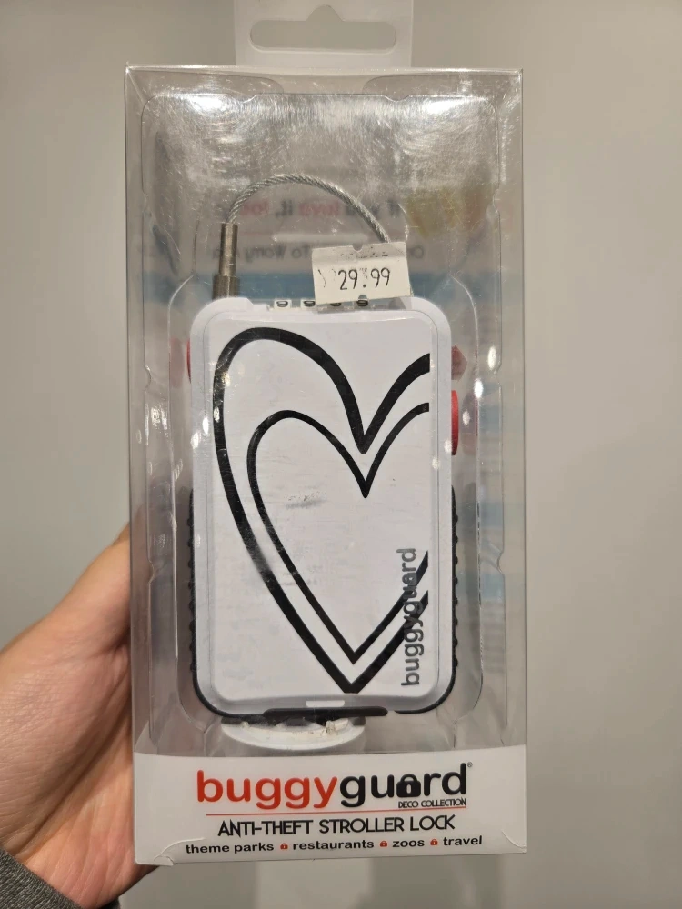 Selling a new Buggyguard Anti-Theft Stroller Lock! It's still in its original packaging and ready to use. This lock is perfect for securing your stroller in theme parks, restaurants, zoos, and while travelling. It's from the Deco Collection.