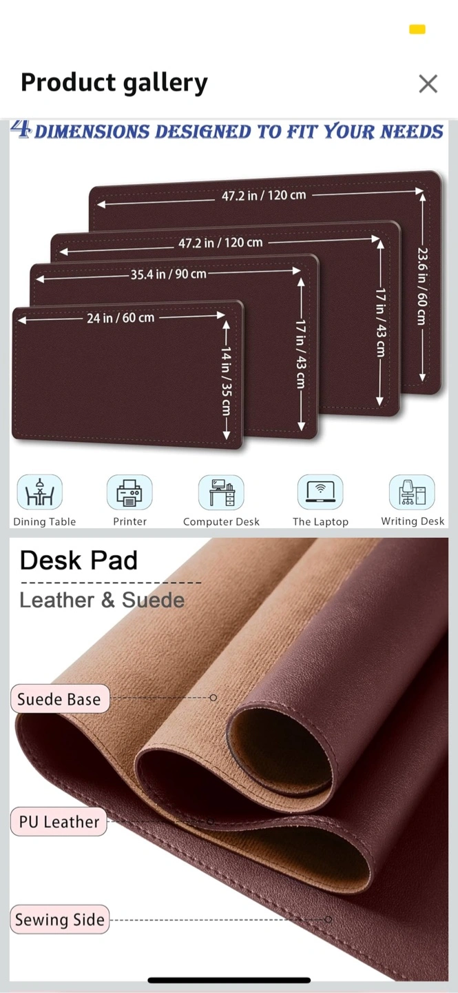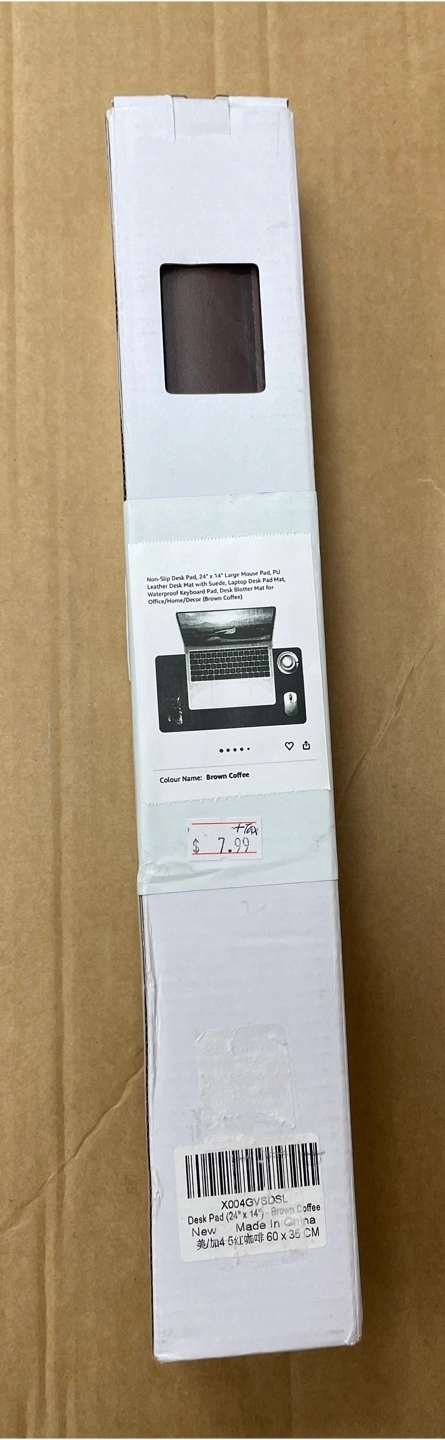 This desk pad is in brown coffee colour and measures 24" x 14". It's made of PU leather with a suede base, making it water-resistant, easy to clean, and slip-resistant. Perfect for your computer desk, laptop, or writing desk! PS:This is the final sale. (No exchanges or returns)100% brand new product. Excellent price. No bargaining accepted. First come, first served.