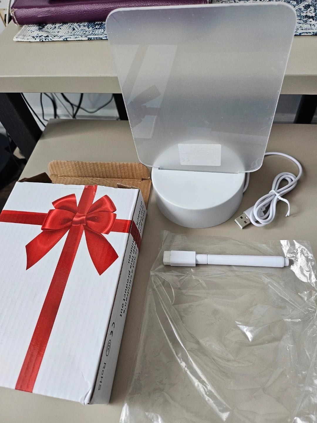 Selling a new LED message writing board! It comes with a pen so you can write fun notes or reminders. It's brand new and still in the box, so it would make a great gift too! Included is the USB cable to power it up.