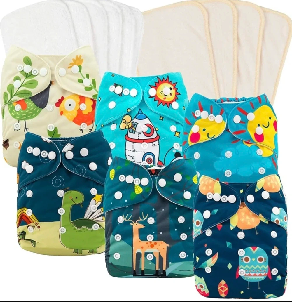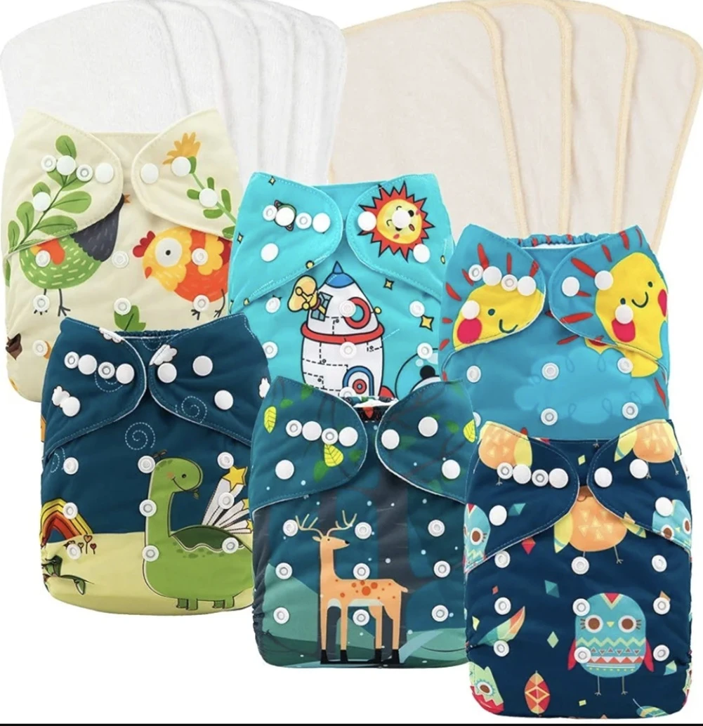 Selling a set of cloth diapers with various cute patterns! They come with inserts for extra absorbency. Great for eco-conscious parents and keeping your little one comfy. These diapers are adjustable to fit babies of different sizes