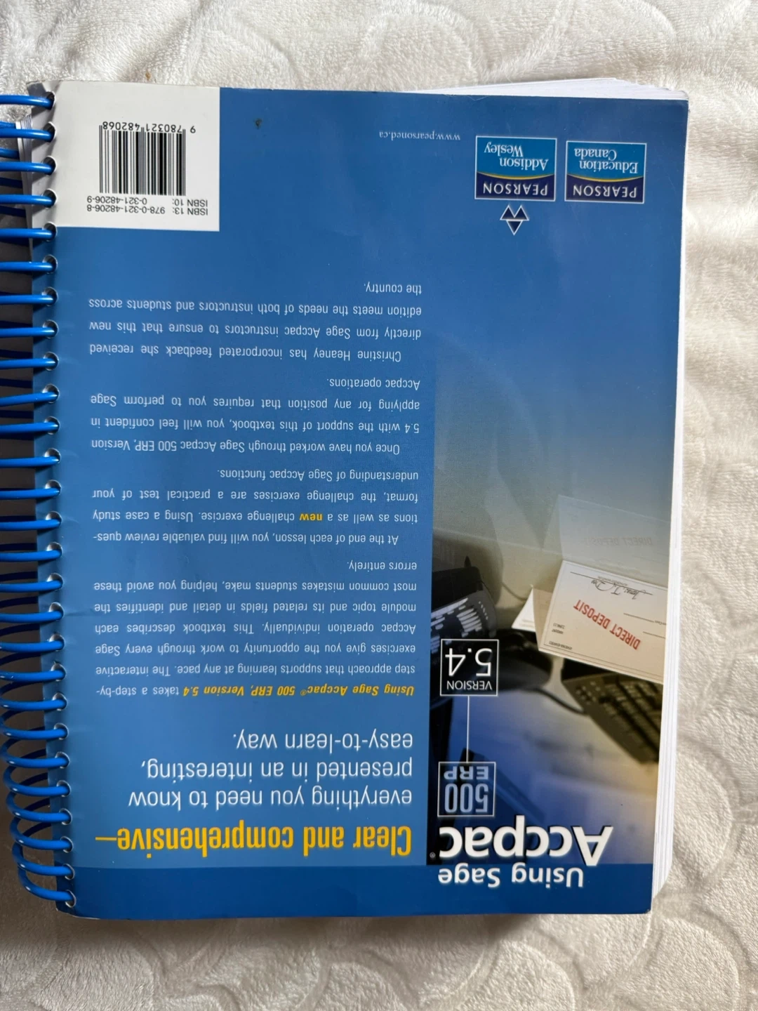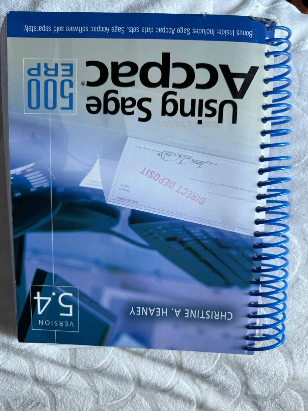 I'm selling a textbook called 'Using Sage Accpac 500 ERP' by Christine A. Heaney. It's a clear and comprehensive guide, presenting everything you need to know in an interesting, easy-to-learn way. This textbook describes each Accpac operation individually. It takes a step-by-step approach that supports learning at any pace. Feel free to message me if you're interested!