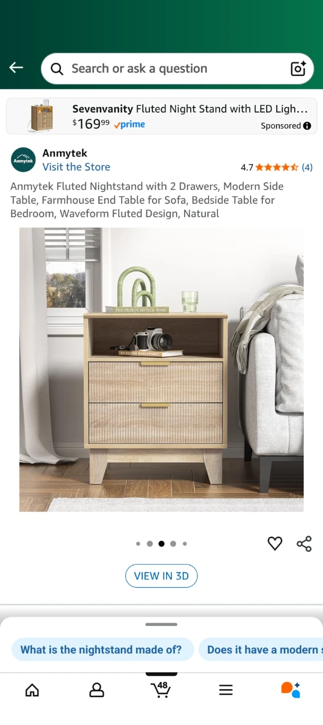 Selling an Anmytek fluted nightstand with two drawers! It's a modern side table perfect for a sofa or bedside. The design is a natural waveform fluted style. It features ample storage space with two drawers and an open cubby. The drawers have smooth sliding rails for durability and smoothness!