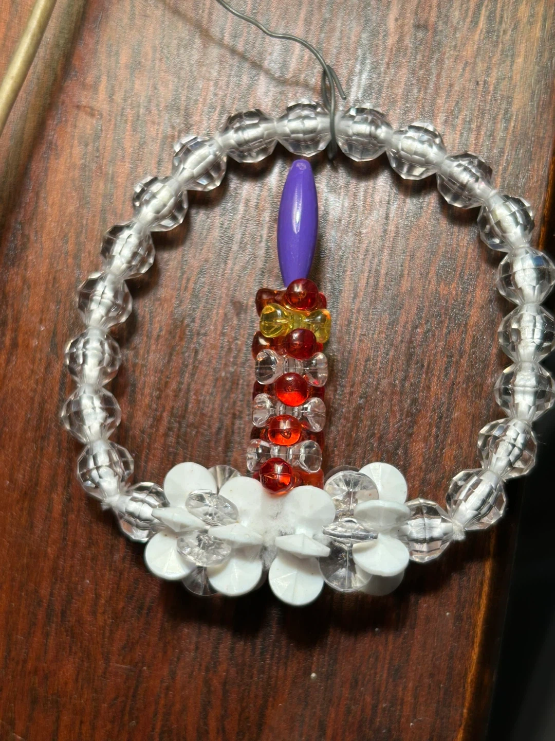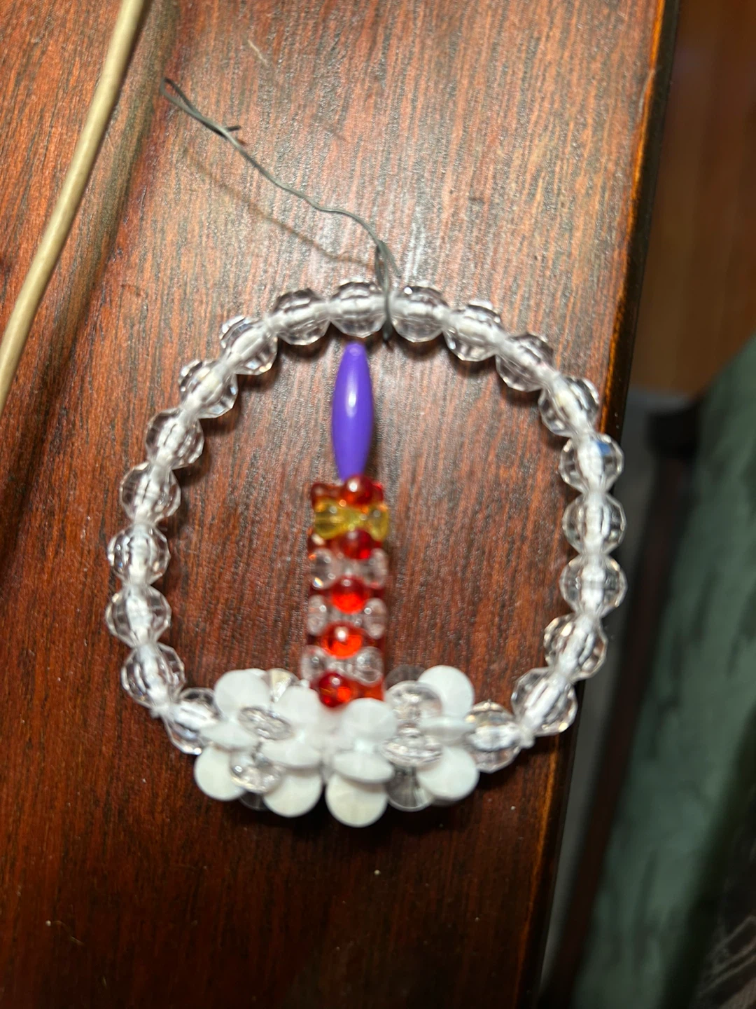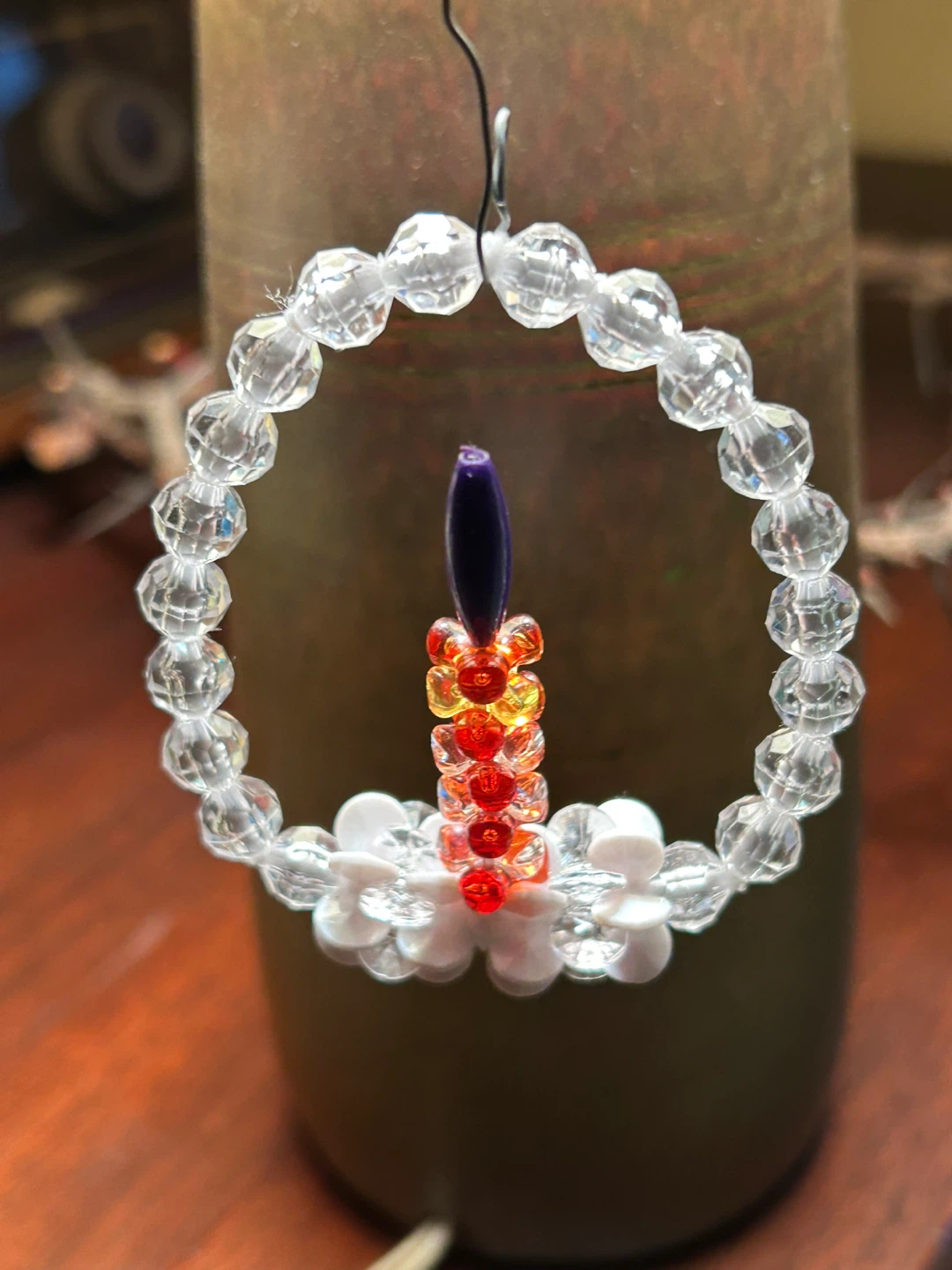 Charming sweet handmade Xmas tree bulb ornament Candle with flame in wreath