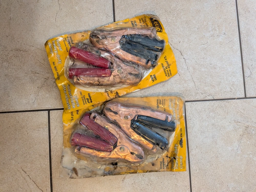 Selling a pair of Reid Electric 800PN super heavy-duty jumper clamps. These are solid copper and designed for industrial use. The packaging shows they're rated for 800 AMP. These retail for over $80 each. Located Southside. If ad is up it's still available.