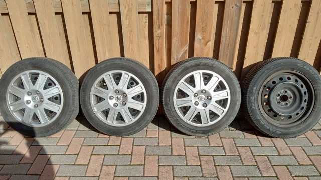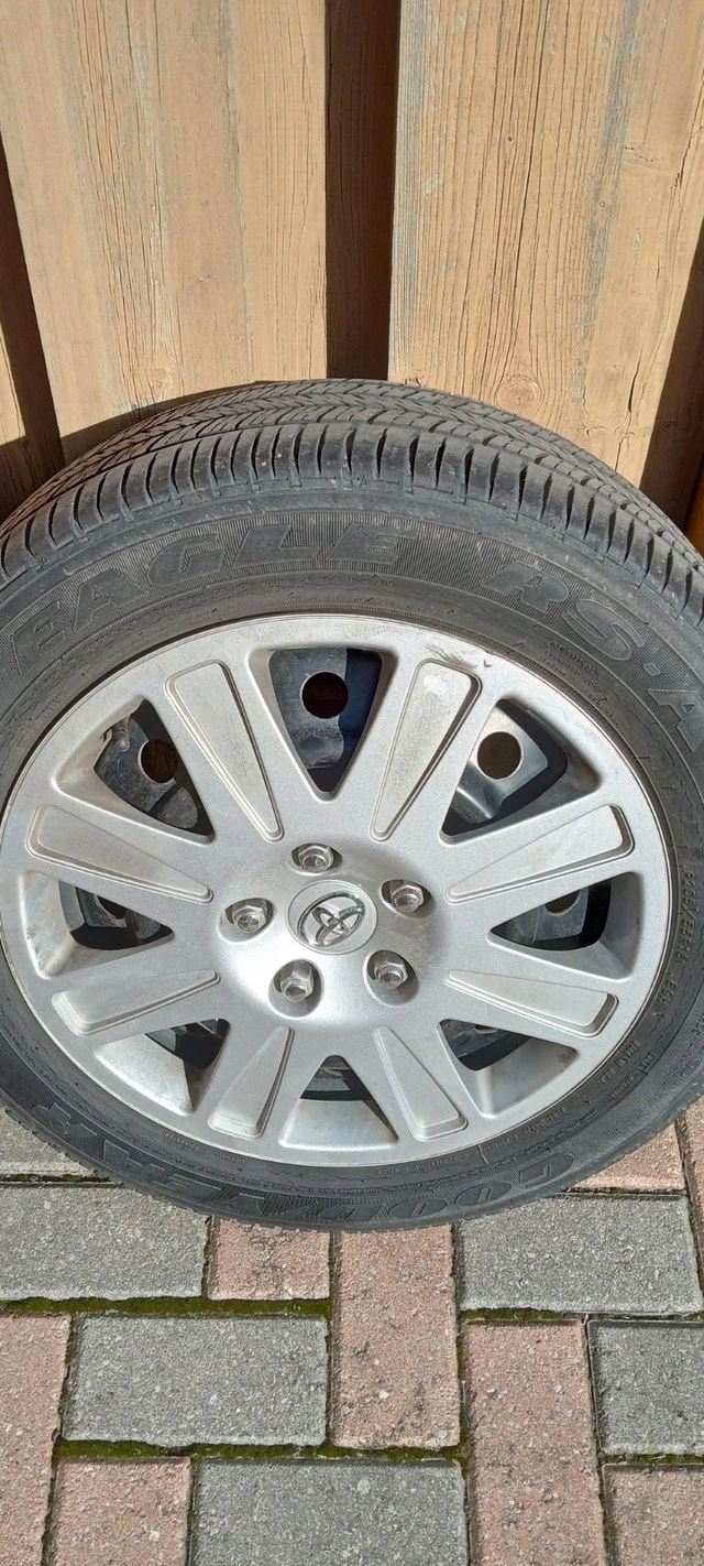 4 16" Goodyear Eagle RS-A P205/55R16 89H A/S tires with accompanying rims. Tires are good for another 1-2 seasons. The rims are in good condition with one cover missing.