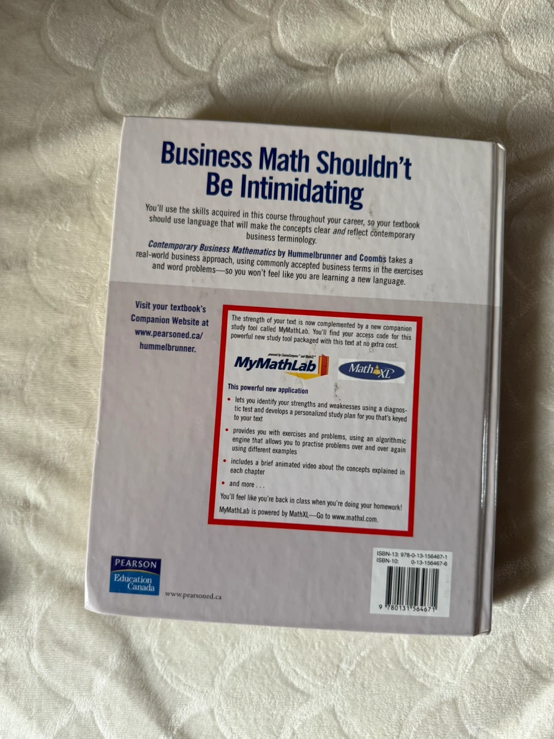 Selling a textbook titled Contemporary Business Mathematics with Canadian Applications, Eighth Edition by S. A. Hummelbrunner and K. Suzanne Coombs. It's a great resource for anyone looking to brush up on their business math skills!
