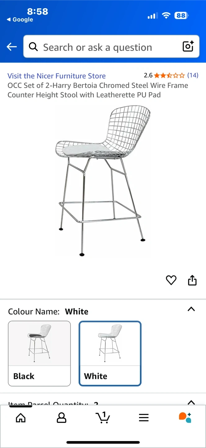 Selling a pair of Harry Bertoia style bar stools with chromed steel wire frames and leatherette PU pads! These are in great shape and would look fantastic in any kitchen or bar area. They're super stylish and comfortable for sitting.