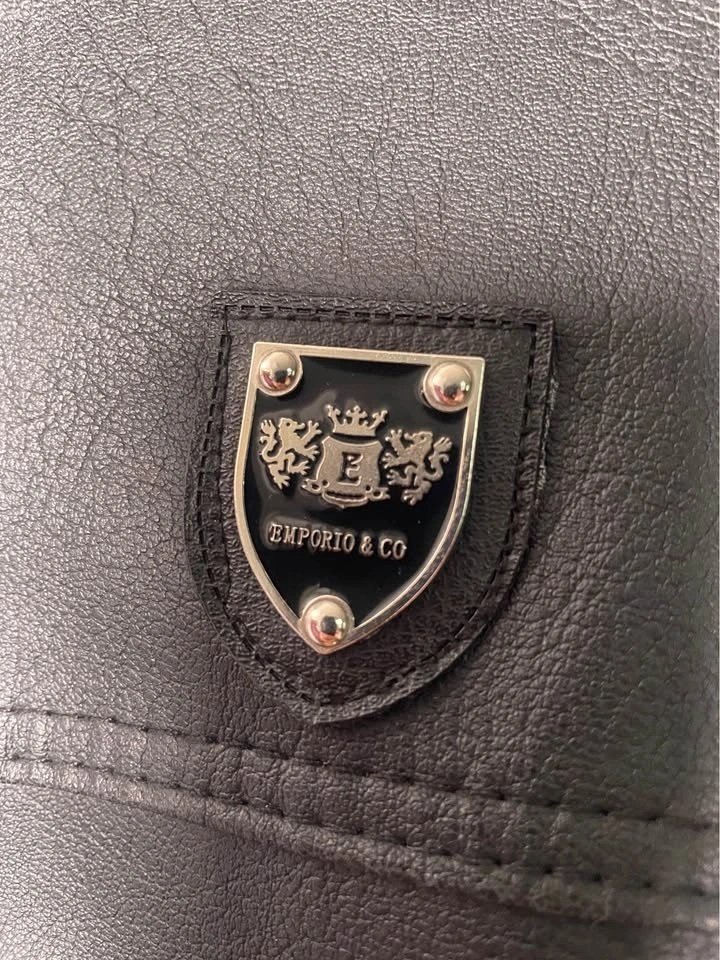 โข Unique Details: Branded "Emporio & Co" metal crest and bold interior lining.