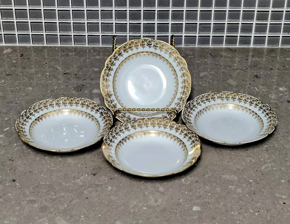 Set of 4 Limoges France Small Bowls - Gold Trim