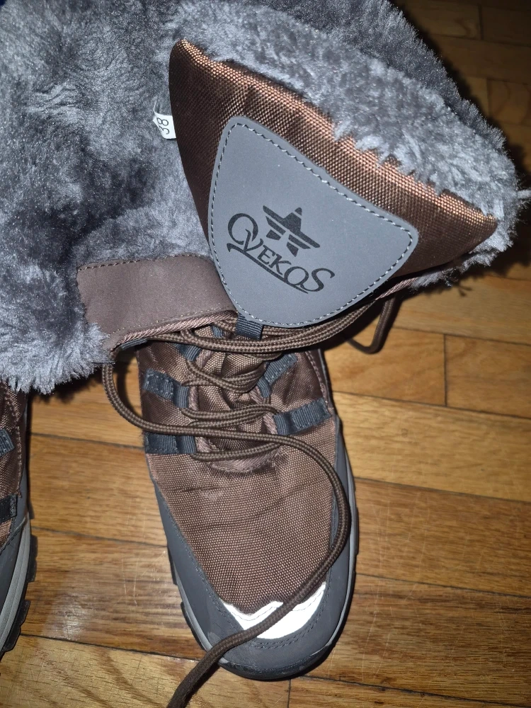 Selling a pair of Qvekos winter boots in size 8. They're in good condition and perfect for keeping your feet warm and dry this winter. The boots have a sturdy sole for good traction and a cozy faux fur lining.