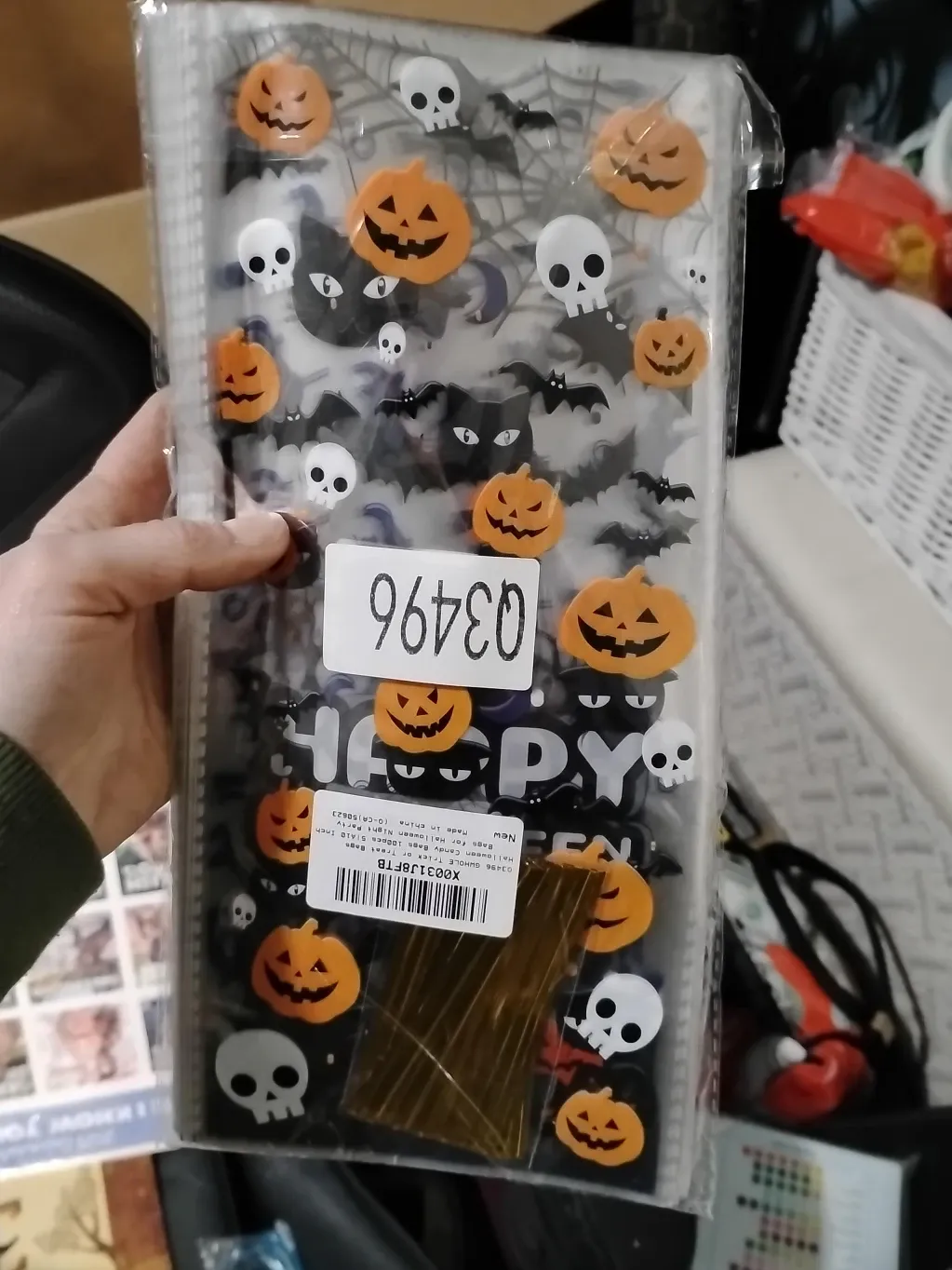 I have a brand new pack of Halloween candy bags! This set includes 100 bags, each measuring 5x10 inches. They're perfect for Halloween night parties and trick-or-treating! The bags feature a fun Halloween design with pumpkins, skulls, bats, and black cats