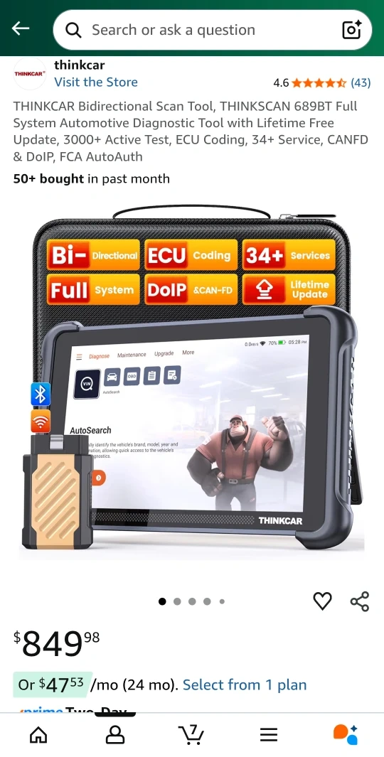Selling a brand new THINKCAR THINKSCAN 689BT Full System Automotive Diagnostic Tool! It comes with a lifetime free update, active test, ECU coding, and 34+ services. The original price was over $700. The box is included.