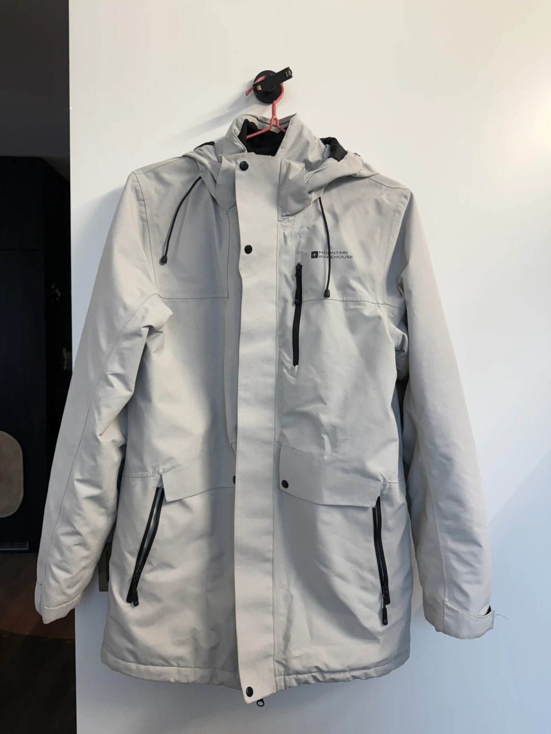 Selling a Mountain Warehouse waterproof parka in Men’s small. It's a light grey colour and good condition! Perfect for those rainy days or outdoor adventures.