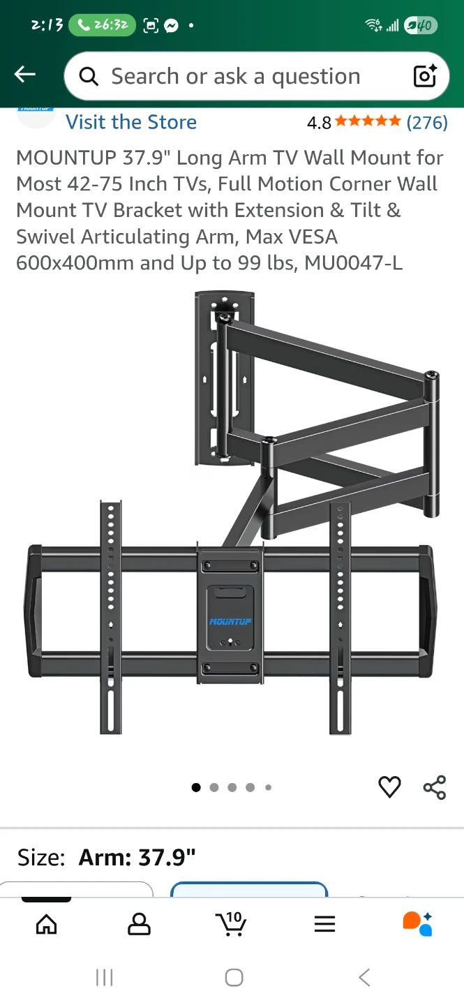 Selling a Mountup 37.9" long arm TV wall mount. It's a full motion corner wall mount TV bracket with extension and tilt and swivel articulating arm. It supports a max VESA of 600x400mm and up to 99 lbs