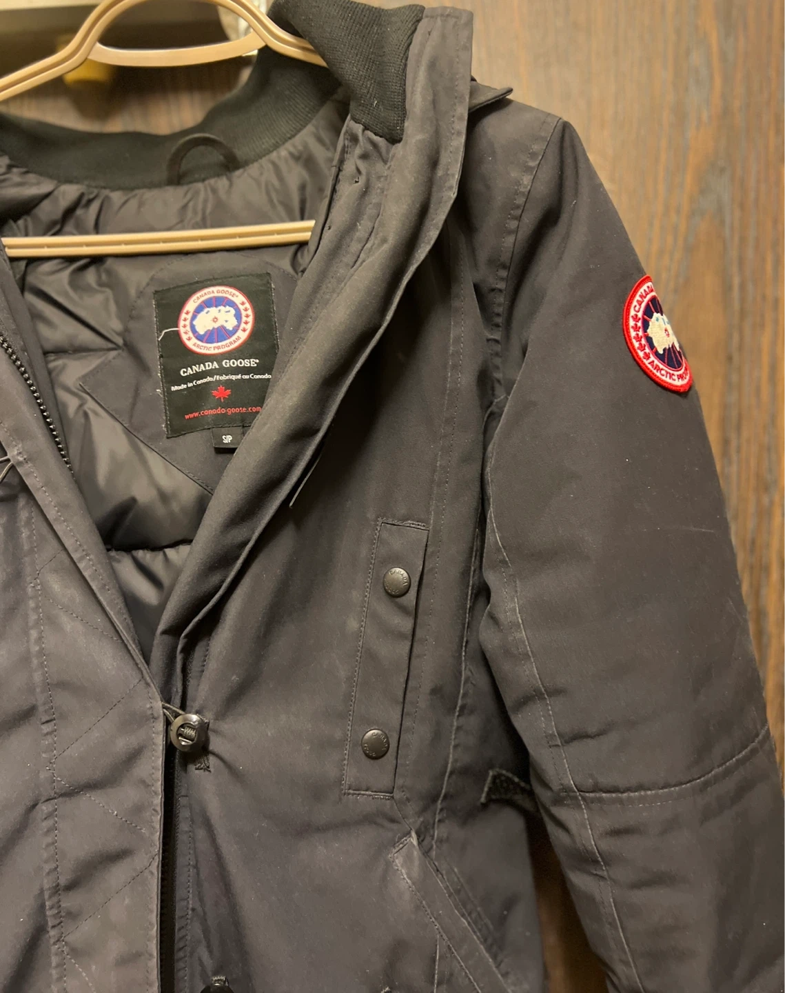 Selling a Canada Goose in size small. It's in good condition and perfect for the Canadian winter! The colour is a dark grey/ black. Feel free to reach out if you have any questions!