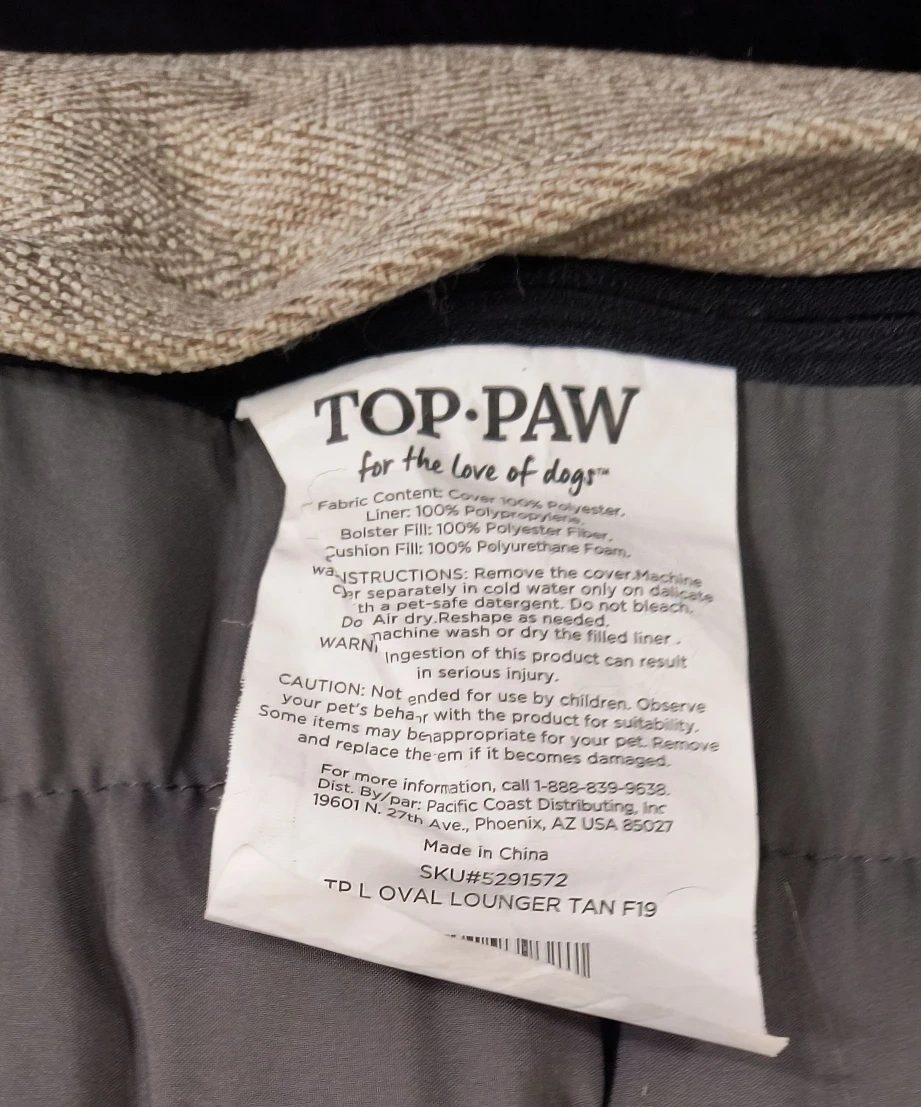 Selling a Top Paw oval lounger dog bed in tan! It's in great shape and ready for a furry friend.
