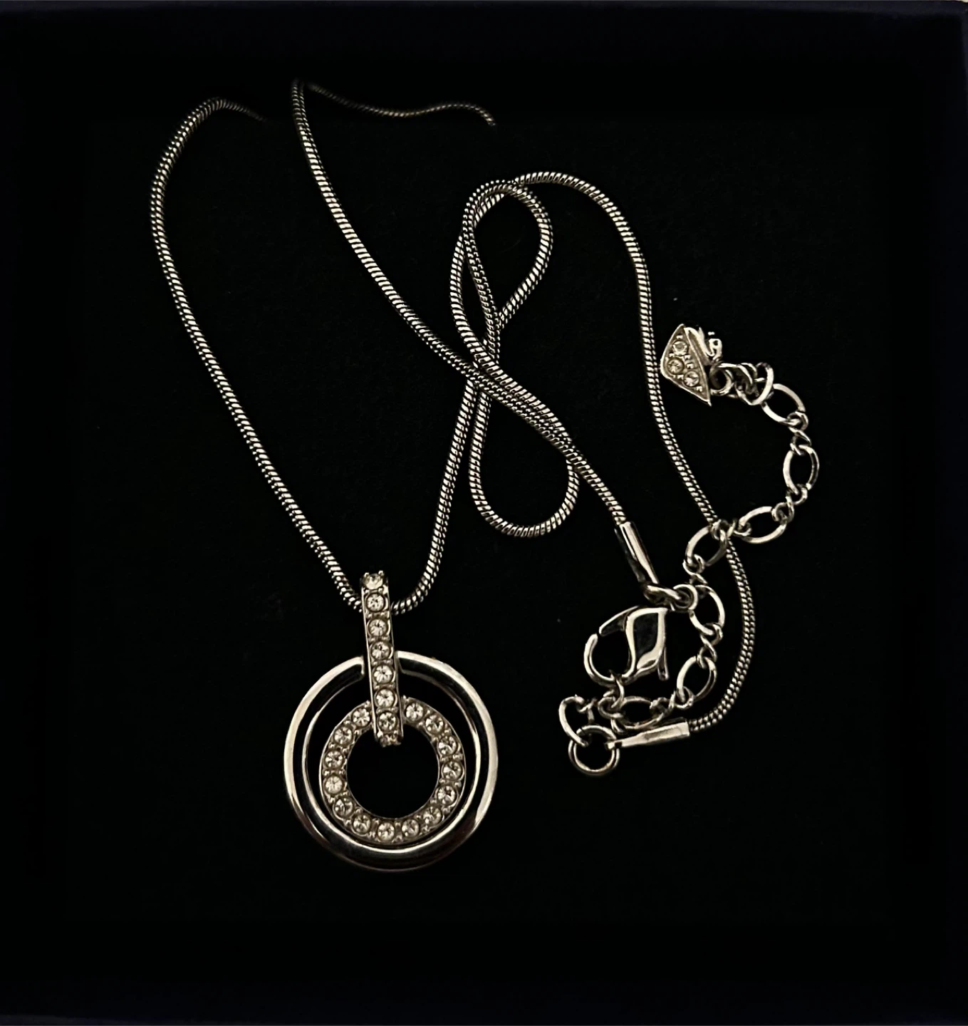 Selling a beautiful Swarovski necklace! It comes with its original box, perfect for gifting or keeping it safe. The silver necklace features a stunning design with sparkling crystals. It's in excellent condition and ready to add a touch of elegance to any outfit