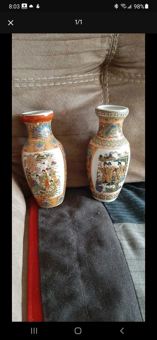 Selling a pair of decorative Asian vases. They feature intricate designs and would make a lovely addition to any room. They are in great condition!
