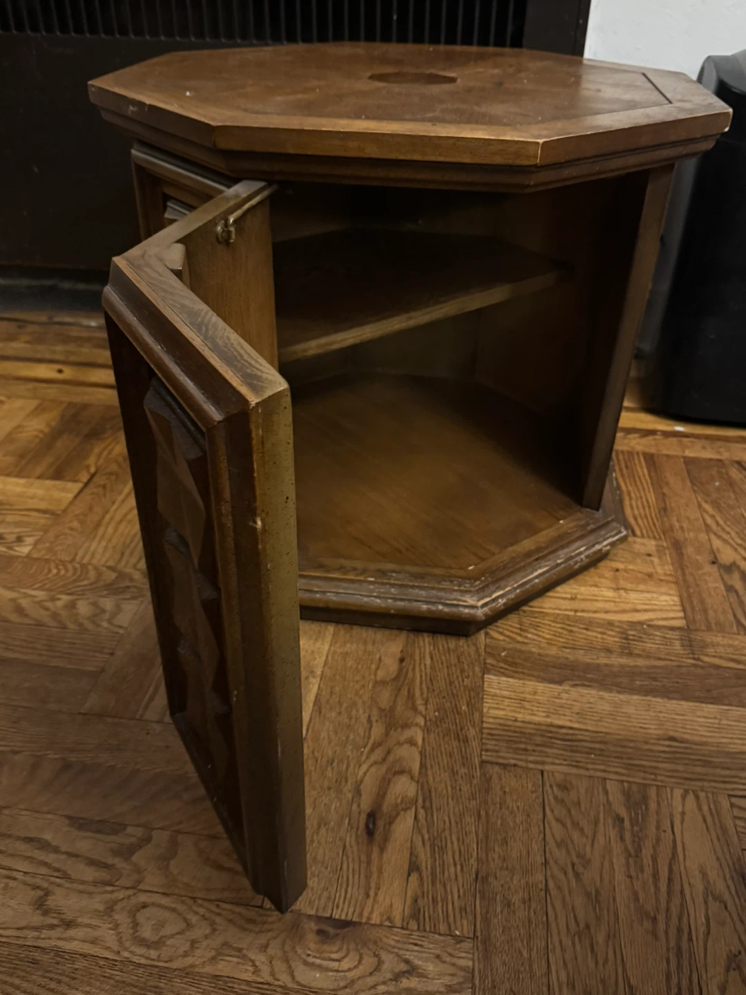Selling a vintage style octogonal side table in perfect condition. Adds character to any home. Lots of space inside for your shoes, home items or extra storage for anything creative.