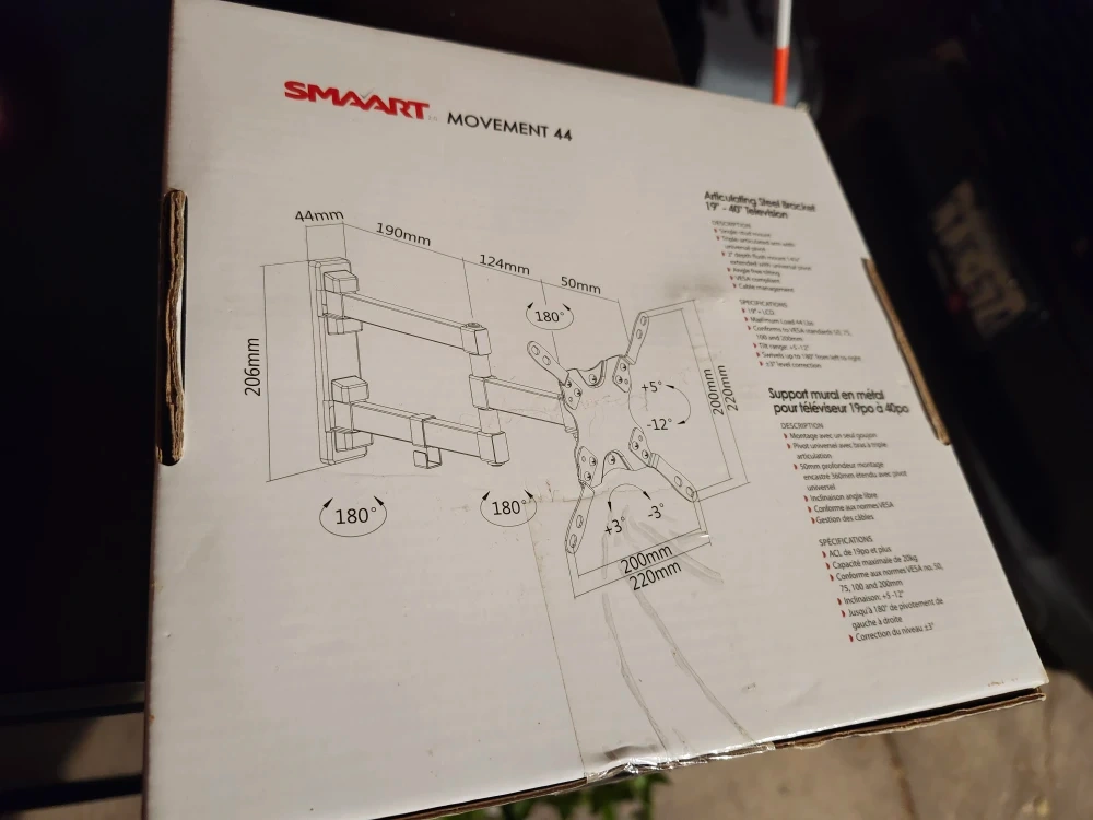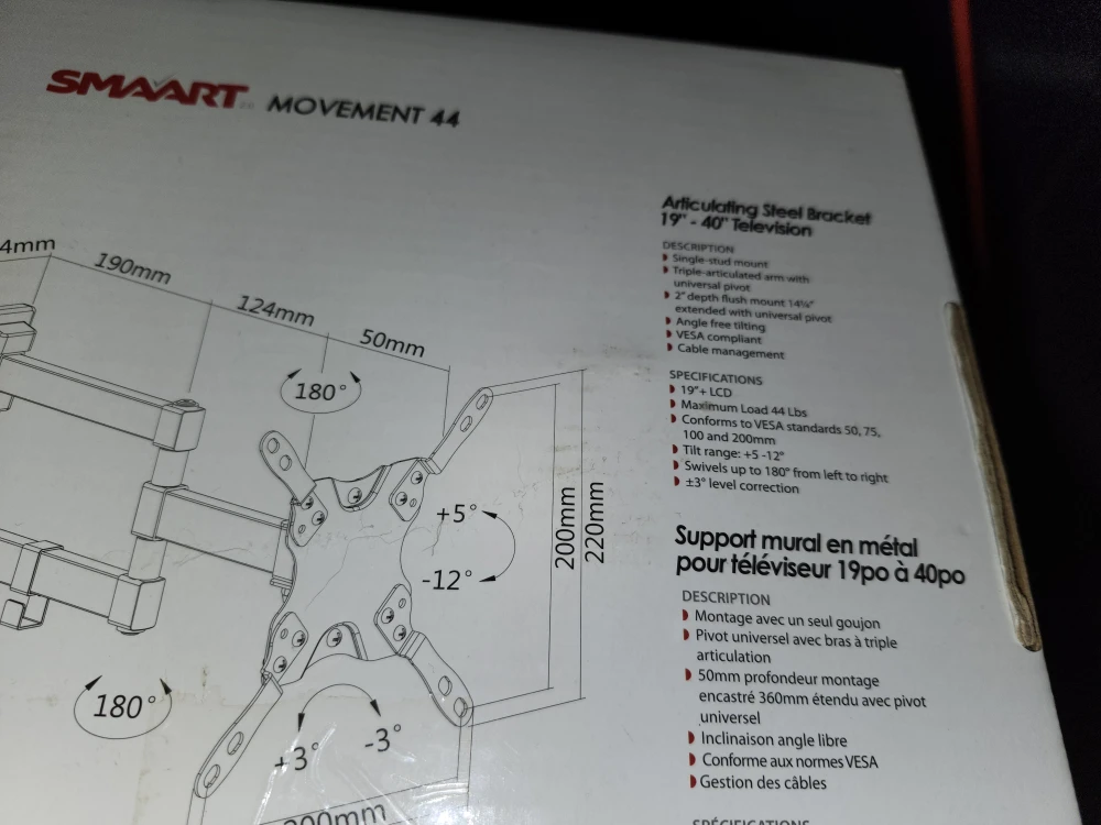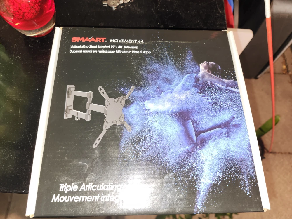 Selling am articulating steel bracket for 19"-40" TVs. It's a single-stud mount with a triple-articulated arm and universal pivot.