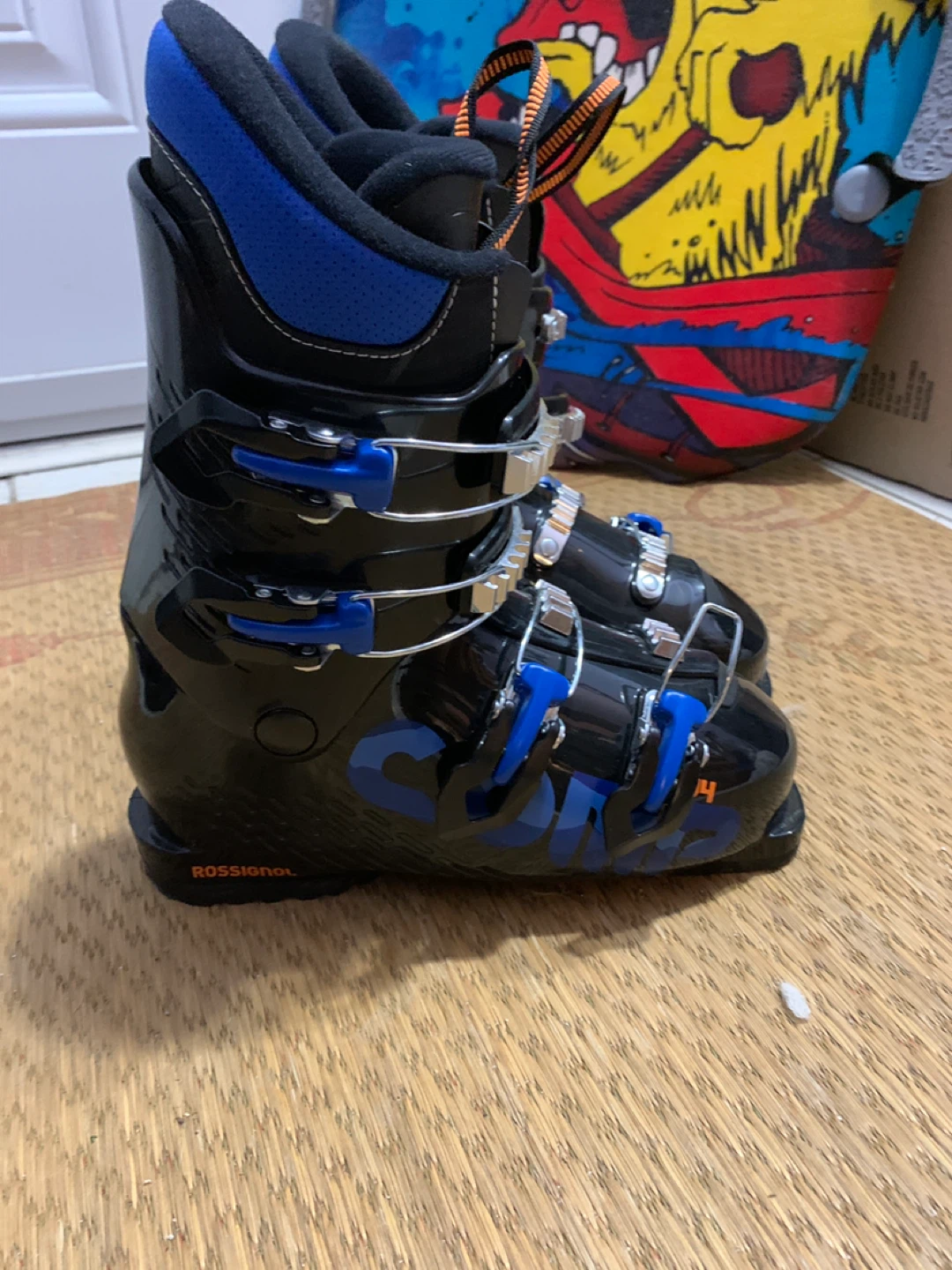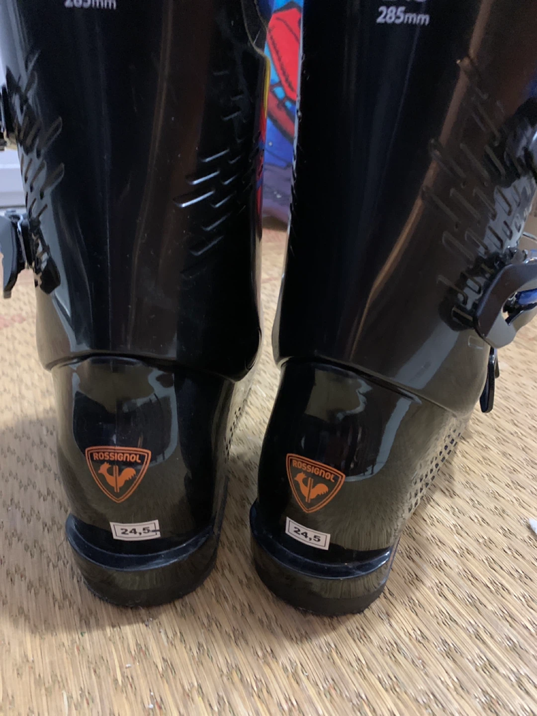 Selling a pair of Rossignol ski boots in black with blue accents. The size is 24.5, which corresponds to 285mm. They are in good condition and ready to hit the slopes!
