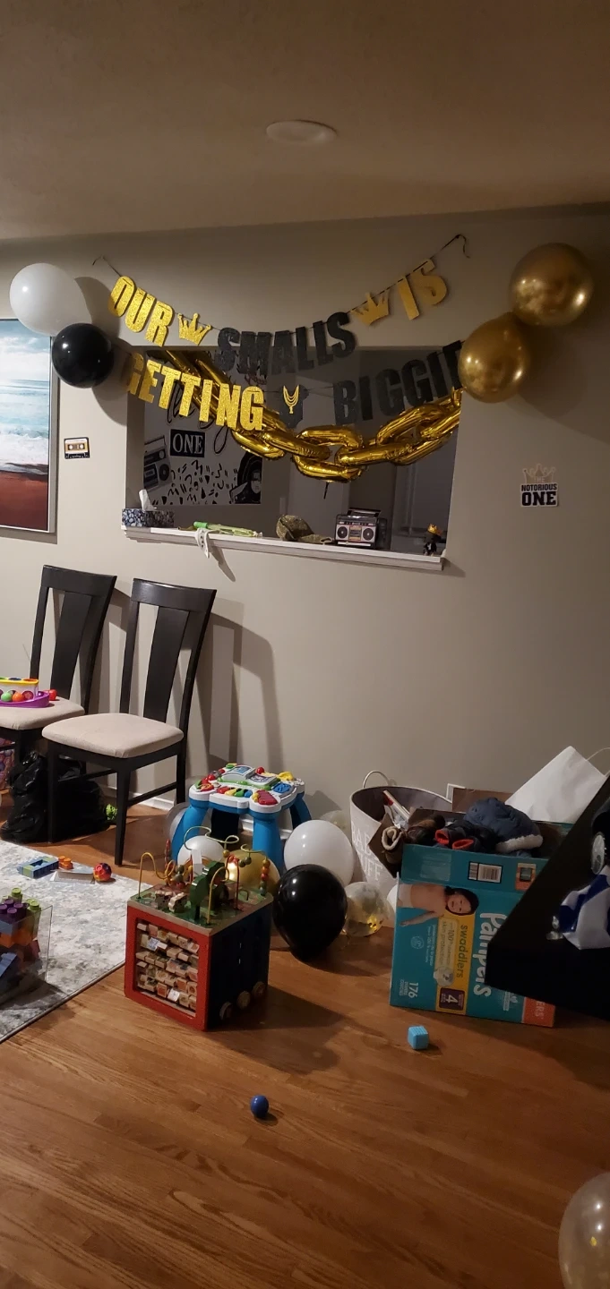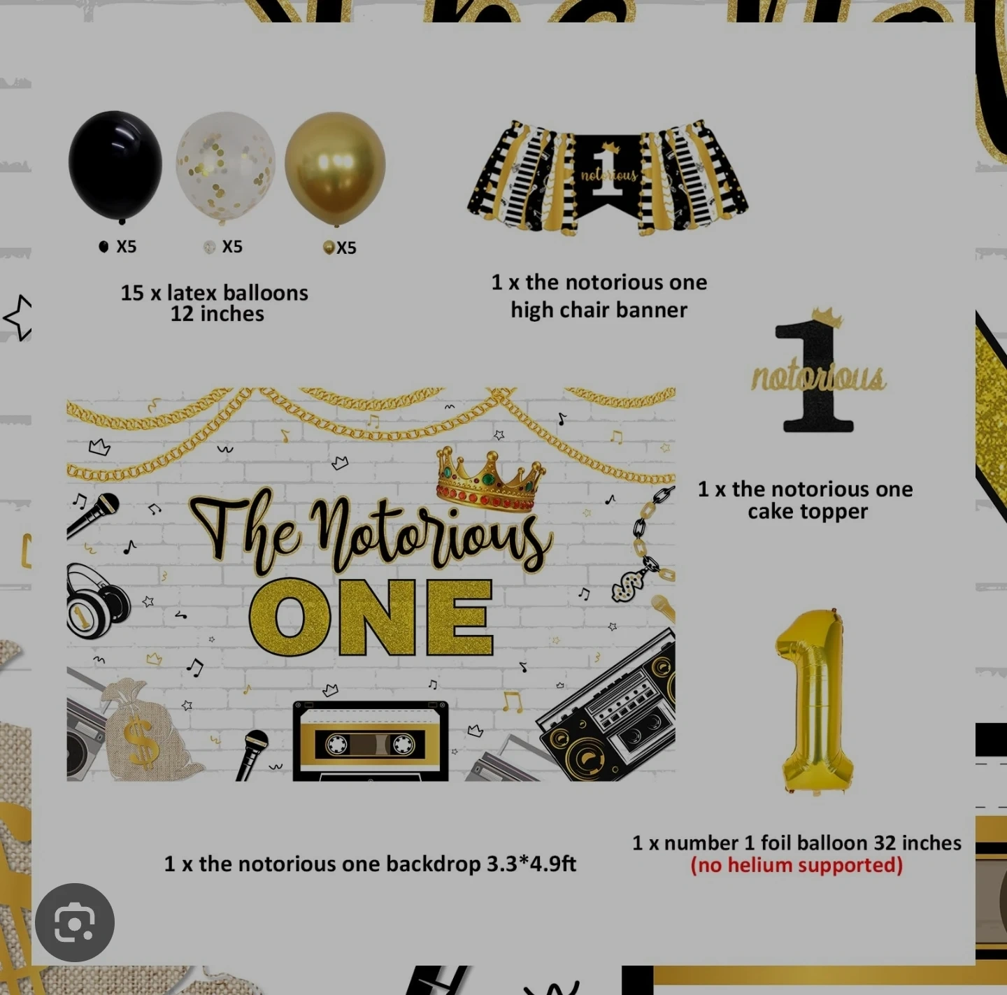 A lot of decorations for a hip-hop themed first birthday you won't forget! The balloons can be refilled with helium. We've used most of the regular balloons but all the helium should still be fine. The big gold chain is my favorite!