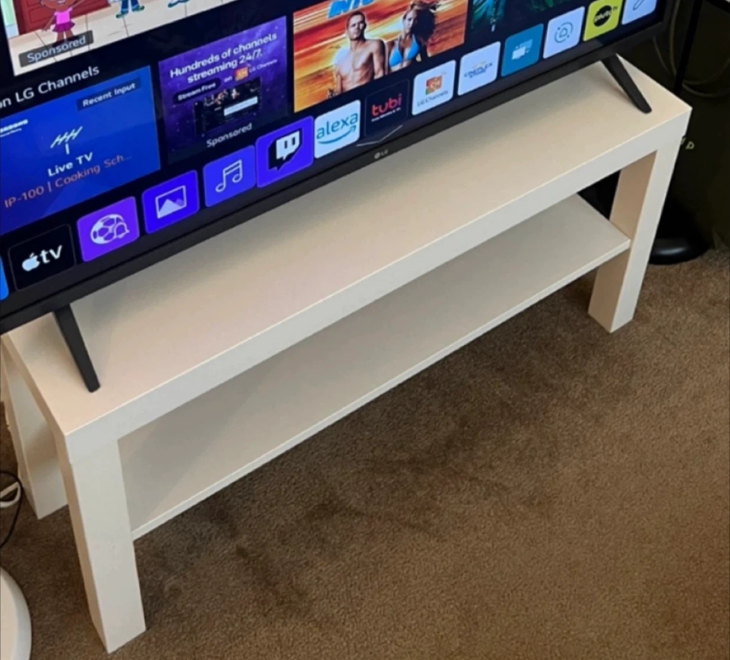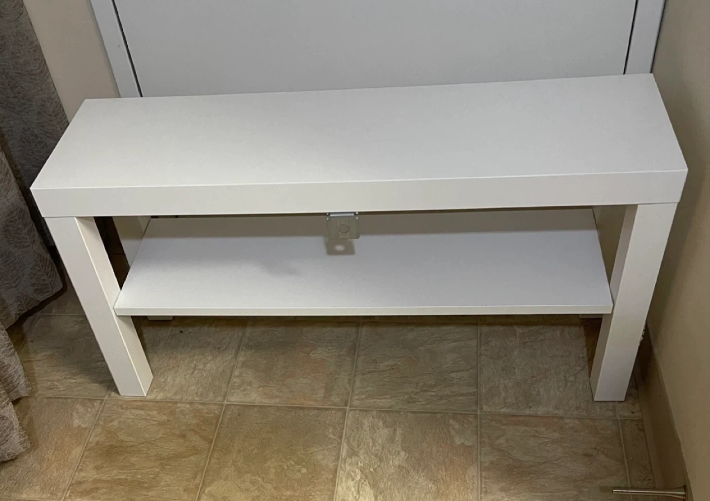 Modern white wooden IKEA Lack TV stand (TV bench). Solid and sturdy. Perfect for up to 43” TV (The smart TV shown in the pictures is 43”). It can also be used as a console table or shoe rack. It's in excellent condition, like new. From smoke-free, pest-free, and pet-free home.