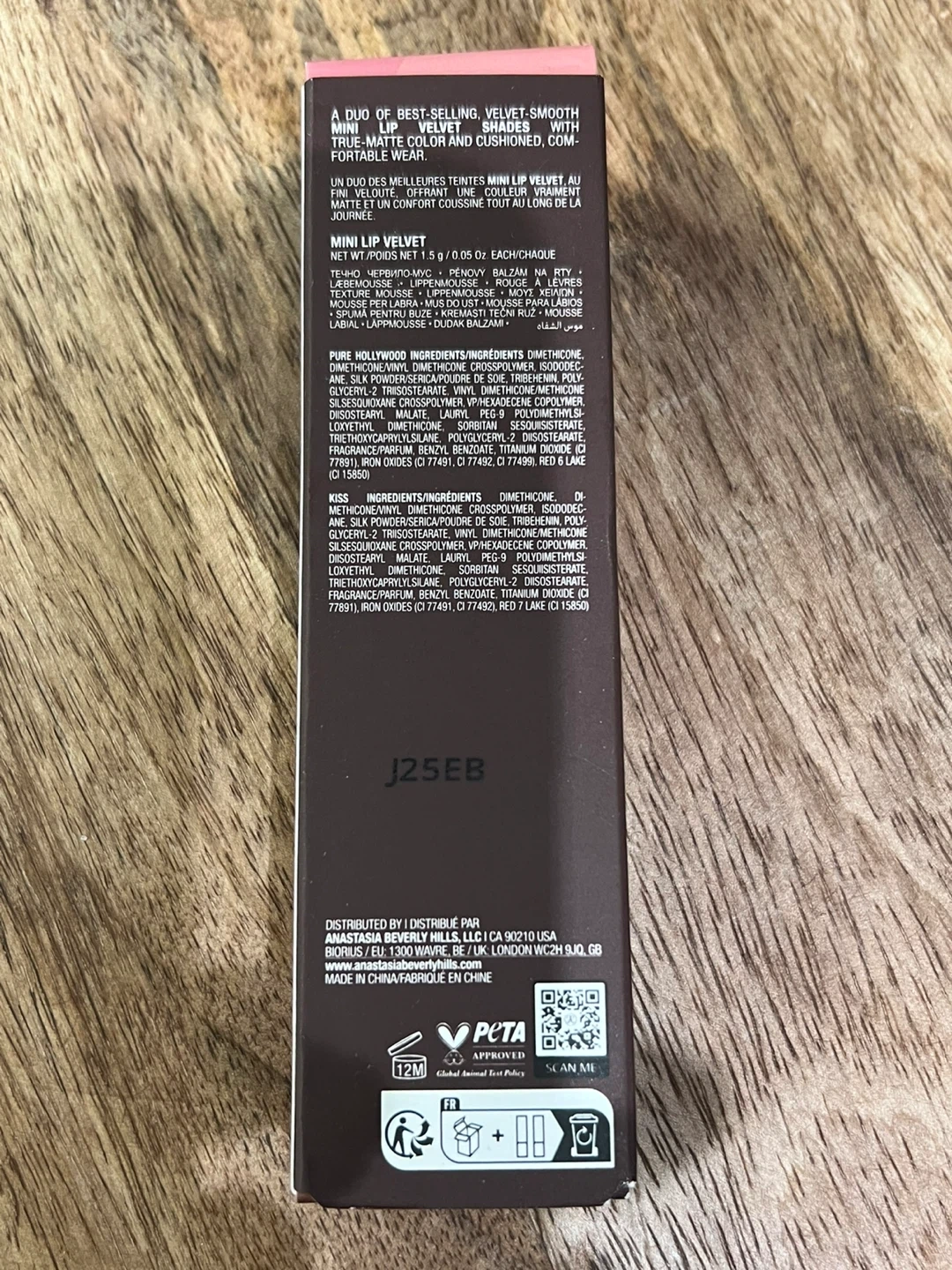 Selling a brand new Anastasia Beverly Hills Mini Velvet Lips Lip Velvet Duo. It's a set of two mini lip velvets with true matte colour and cushioned, comfortable wear. Each contains 1.5 g / 0.05 oz of product.