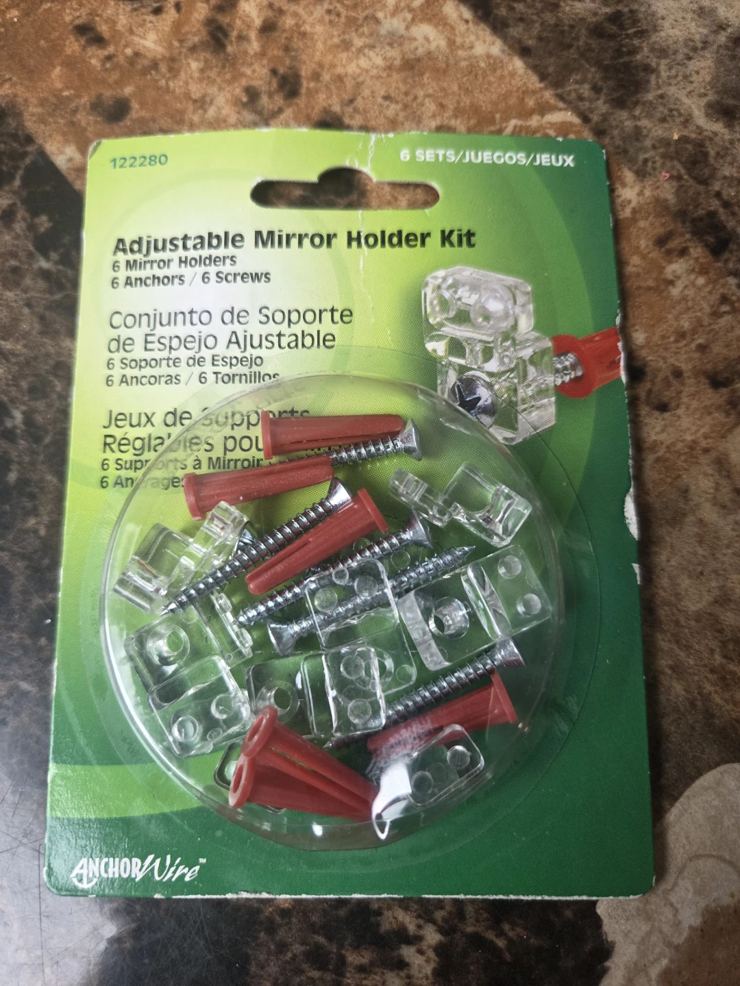 This kits include 6 Mirror Holders, 6 Anchors, 6 Screws