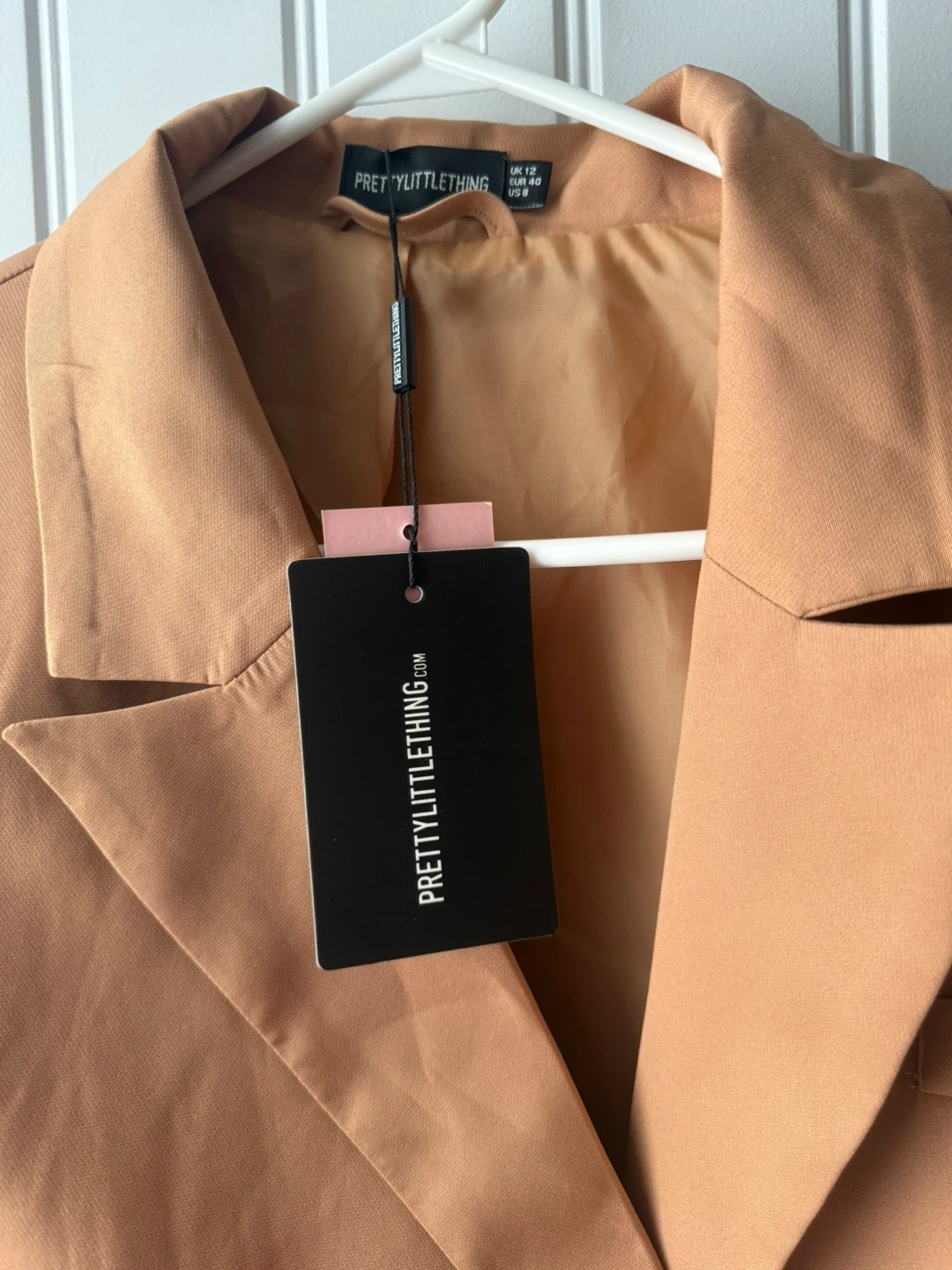 Selling a brand new PrettyLittleThing cropped blazer! It's a size US 8 and has a stylish, cropped fit. The colour is a lovely tan shade, perfect for adding a touch of sophistication to any outfit. Never been worn and still has the tags attached!