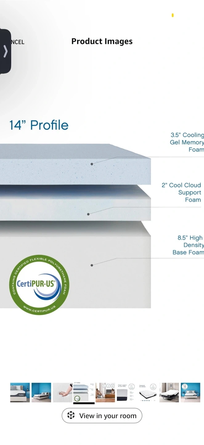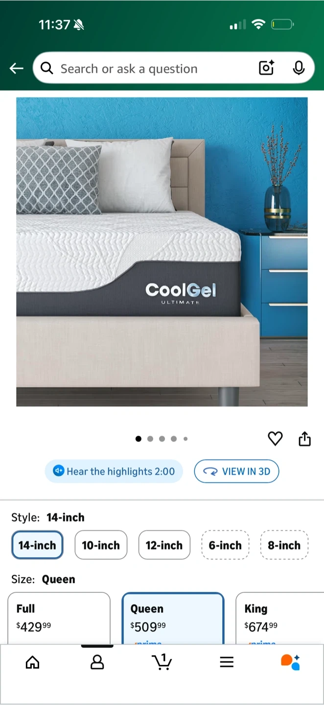 Selling a CoolGel Ultimate queen size mattress with a 14-inch profile. It features 3.5" cooling gel memory foam, 2" cool cloud support foam, and 8.5" high-density base foam. It provides proper support for your body, including orthopedic support for your head, neck, and shoulders, and reduces pressure points on hips and knees. paid $555