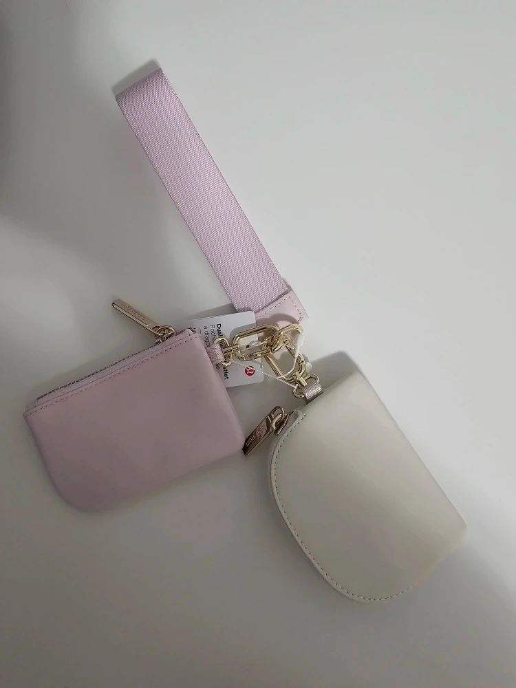 Selling a Lululemon Dual Pouch Wristlet in the trending colours Blissful Pink and Light Ivory. This stylish wristlet is perfect for keeping your essentials close at hand.