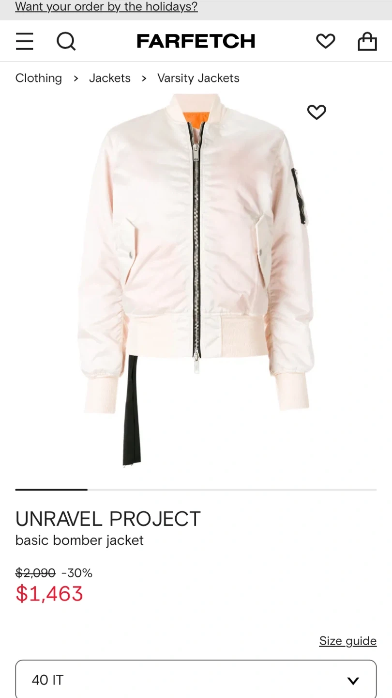 Selling a BNWT Unravel Nylon Bomber Jacket in size 42. It's a stylish piece with a unique design. The jacket is orange and white with black zippers. It originally retailed for $2090.00