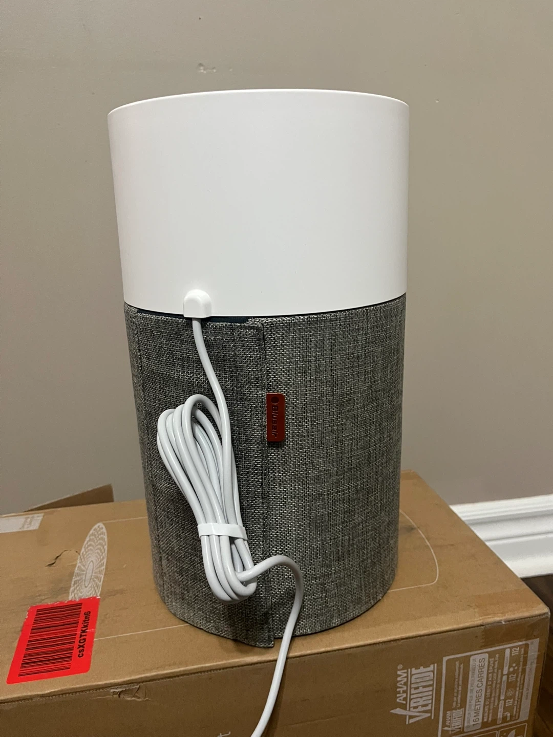Selling a Blueair 311 Auto air purifier in excellent condition! It's white and grey, and comes with the box. It's about 7.9 inches wide and 13.5 inches tall, perfect for cleaning the air in your space with just the touch of a button