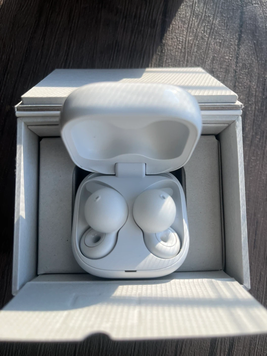 Selling a pair of Sony LinkBuds Open in white. They are in new condition and come with the original box. Great for listening to music or podcasts while still being aware of your surroundings!