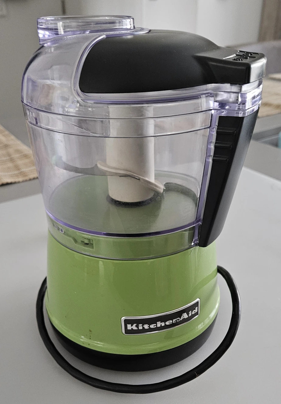 I'm selling a KitchenAid mini electric food chopper in a vibrant green colour. It's in great condition and ready to help with your food prep needs.