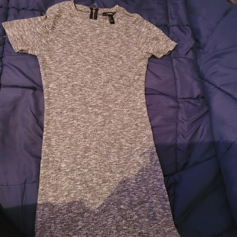 Selling a cute Forever 21 dress in grey! It's a size small and has a zipper in the back. Perfect for a casual day out or dressed up for an evening. It's in great condition!