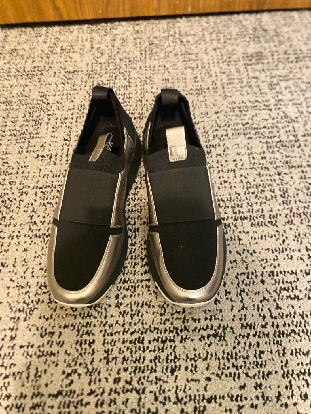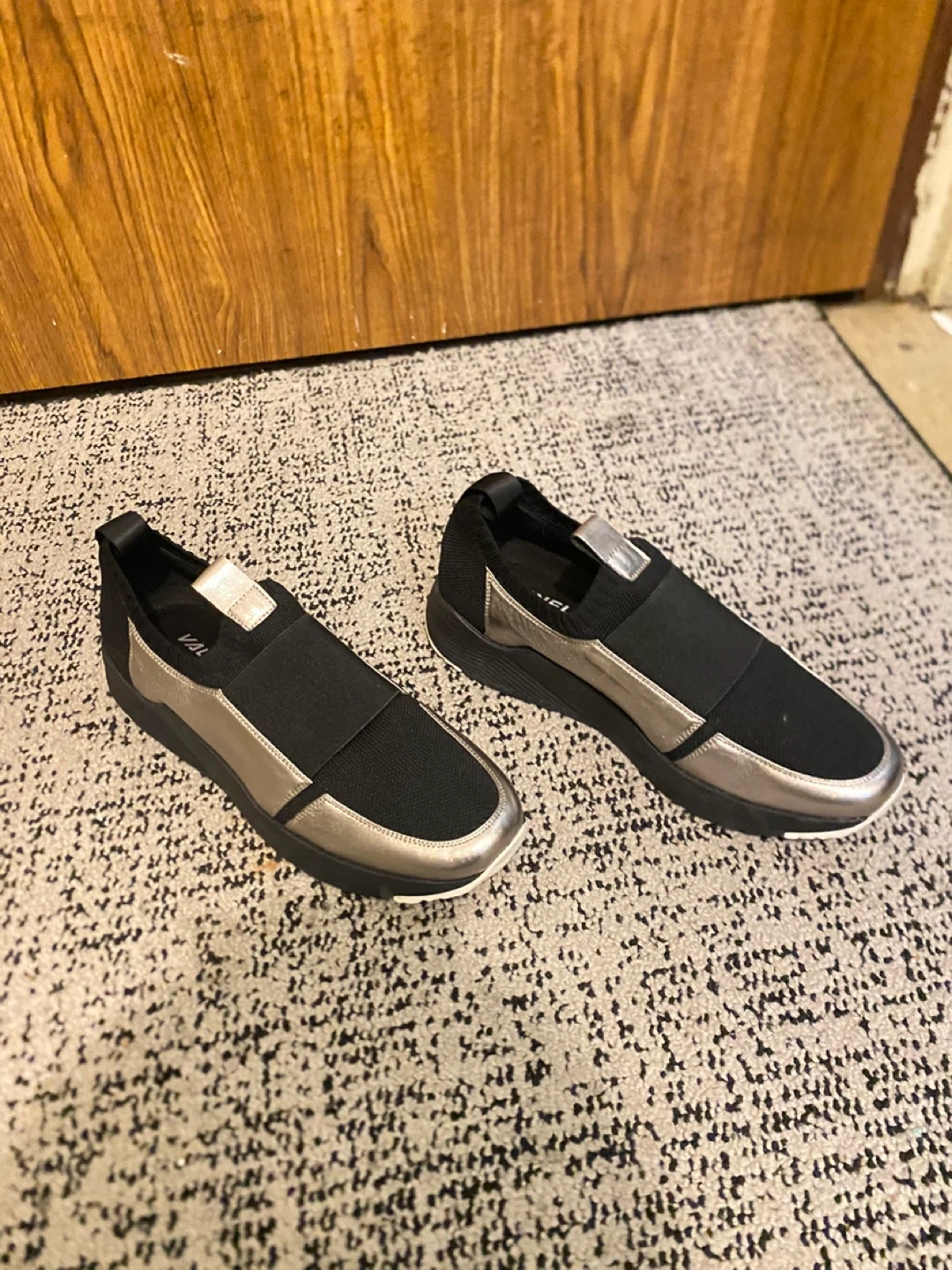 Selling a pair of Vionic women's slip-on shoes in size 8.5 These are black with pewter accents, making them a stylish and comfortable choice for everyday wear. They're in great condition and ready for a new home!
