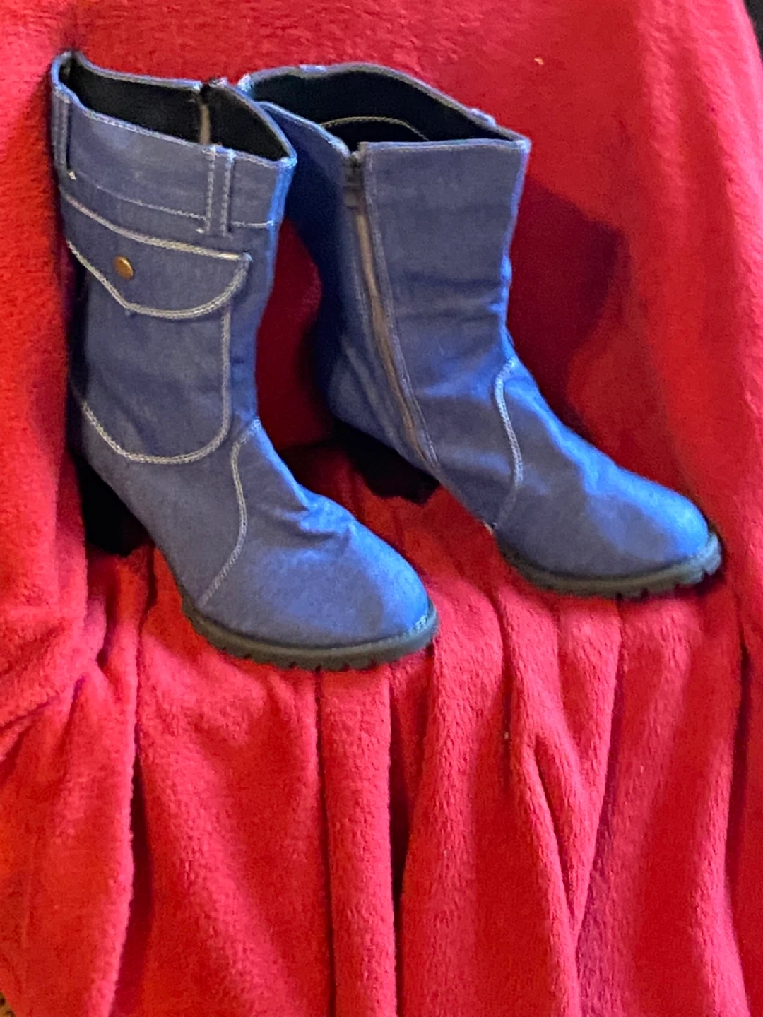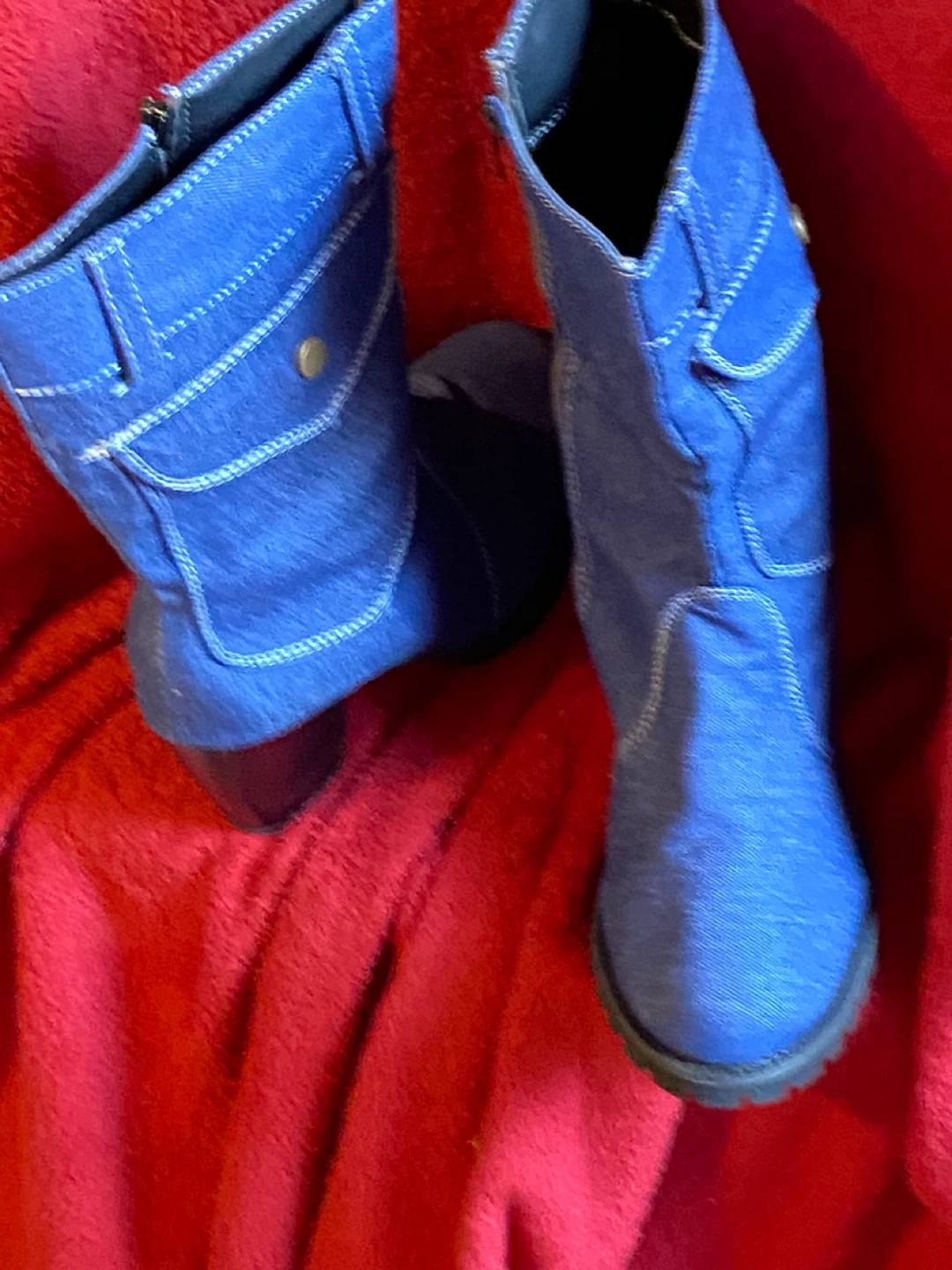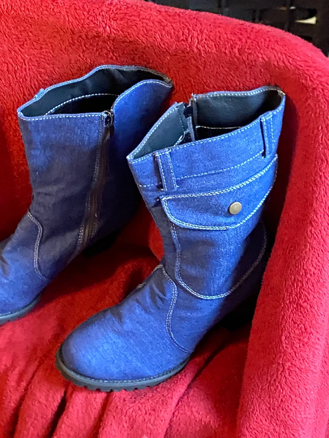 These blue denim ankle boots are super cute! They feature a side zipper and a small heel. They are in great condition and ready for a new home!