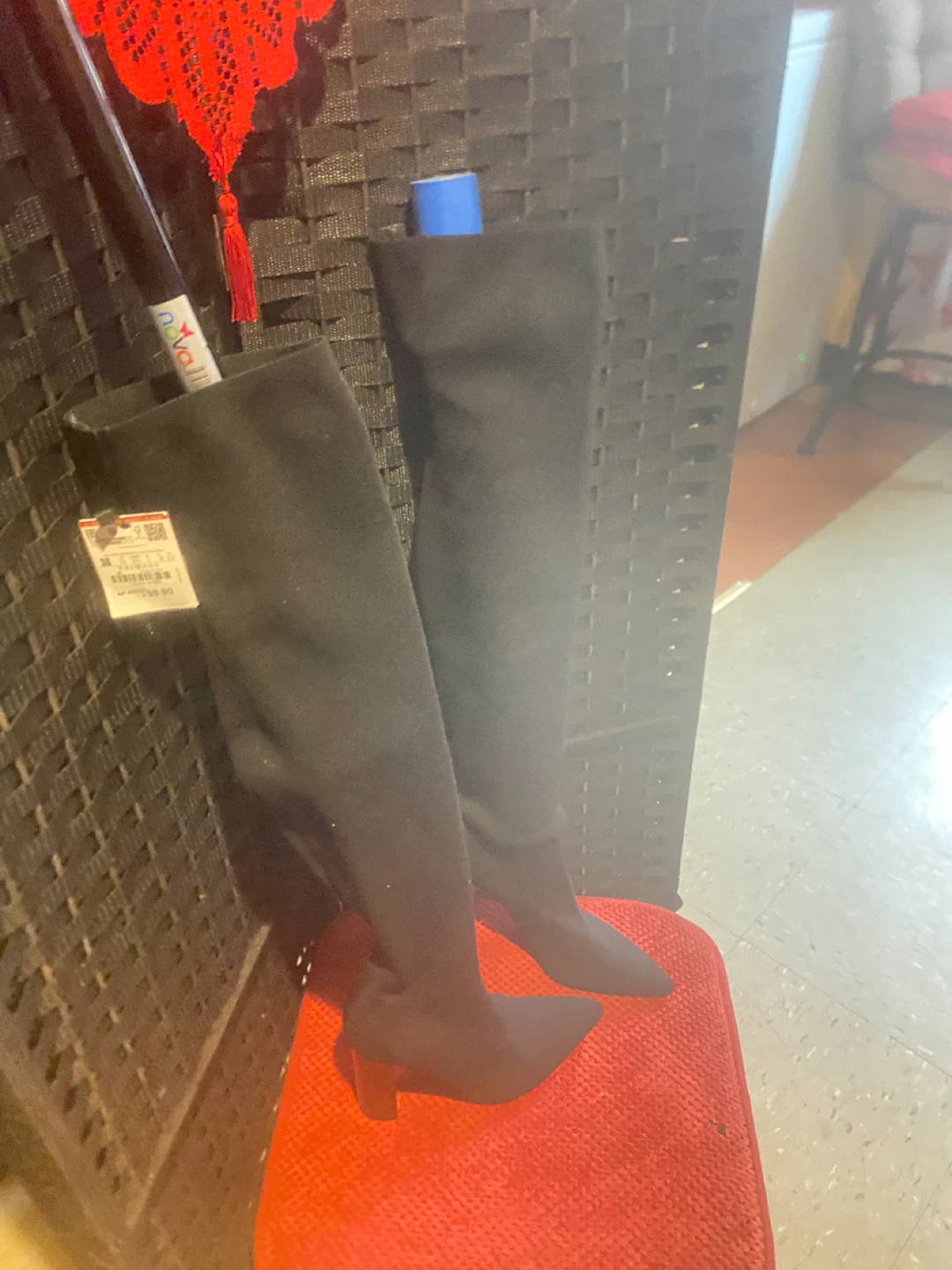 Zara black thigh-high boots are in great condition and ready for a new owner! These boots are perfect for adding a touch of elegance to any outfit. They feature a sleek design and comfortable fit, making them ideal for both casual and dressy occasions