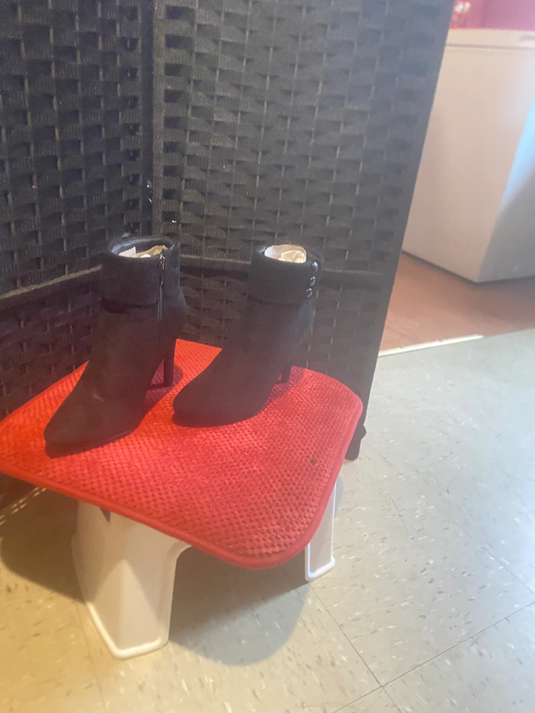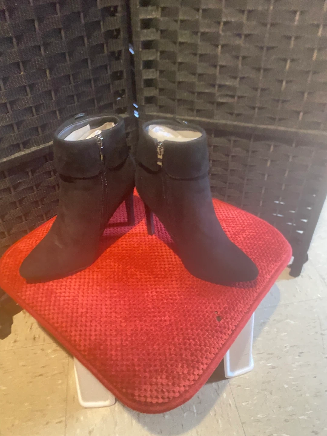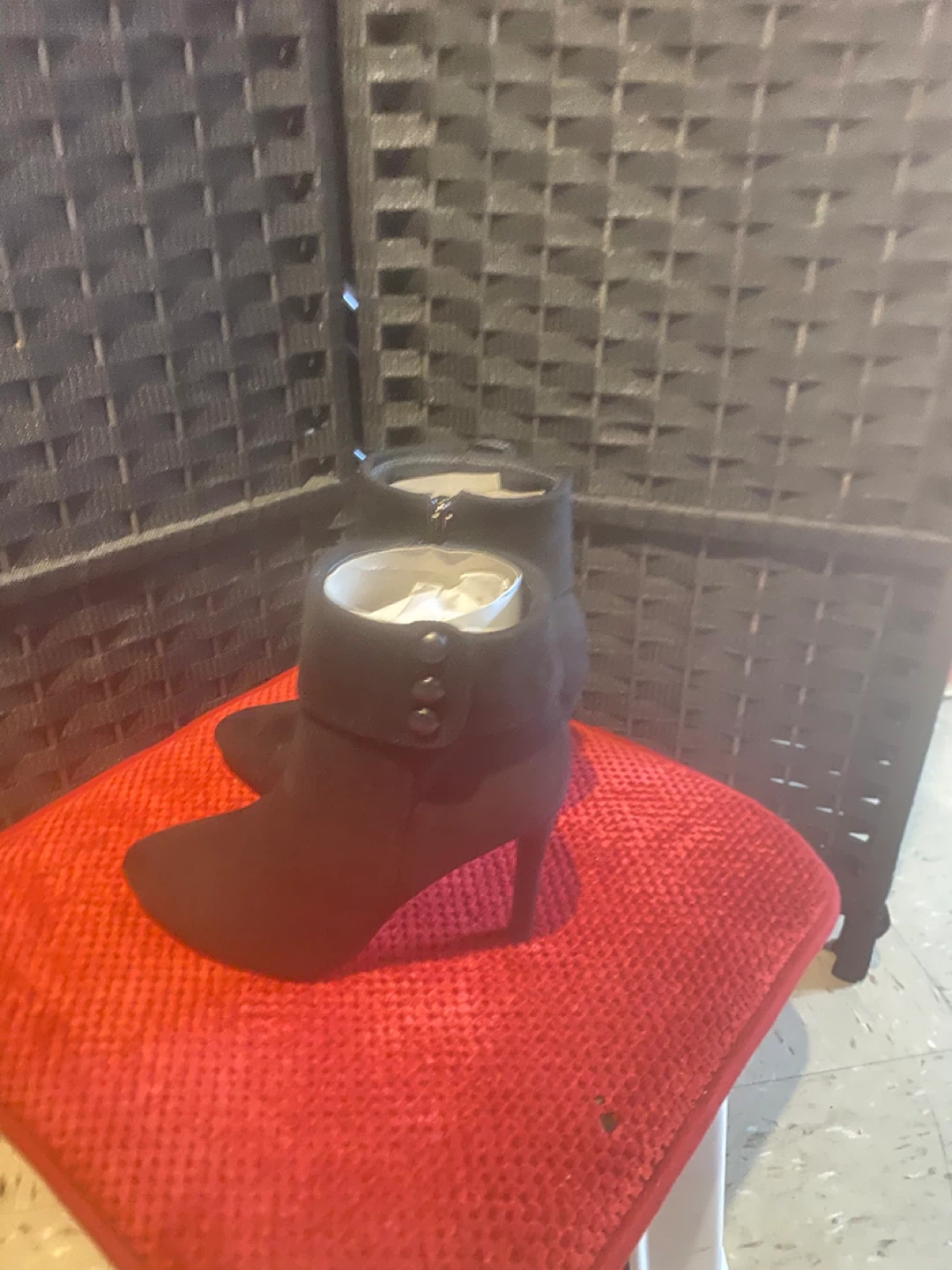 Selling a pair of stylish black ankle boots. They are in great condition and ready for a new owner! Perfect for adding a touch of elegance to any outfit.